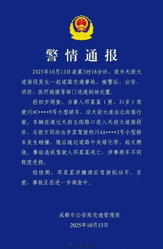 小米SU7成都碰撞燃烧调查公布,具体各位看公告。还是那句话喝酒不开车啊!【来自懂车帝车友圈】