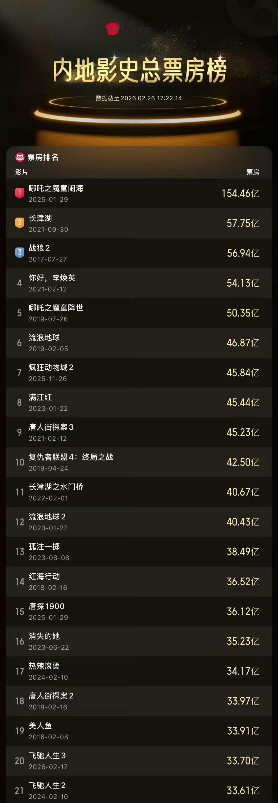 据猫眼专业版数据,电影《飞驰人生3》累计票房突破33.612亿,正式超越《飞驰人生2》,登顶飞驰系列票房最高!一路飞驰,热度不减,喜剧与热血双在线,用实力刷新系列纪录,春节档断层领跑实至名归!🔥飞驰人生3成飞驰系列票房最高一部
