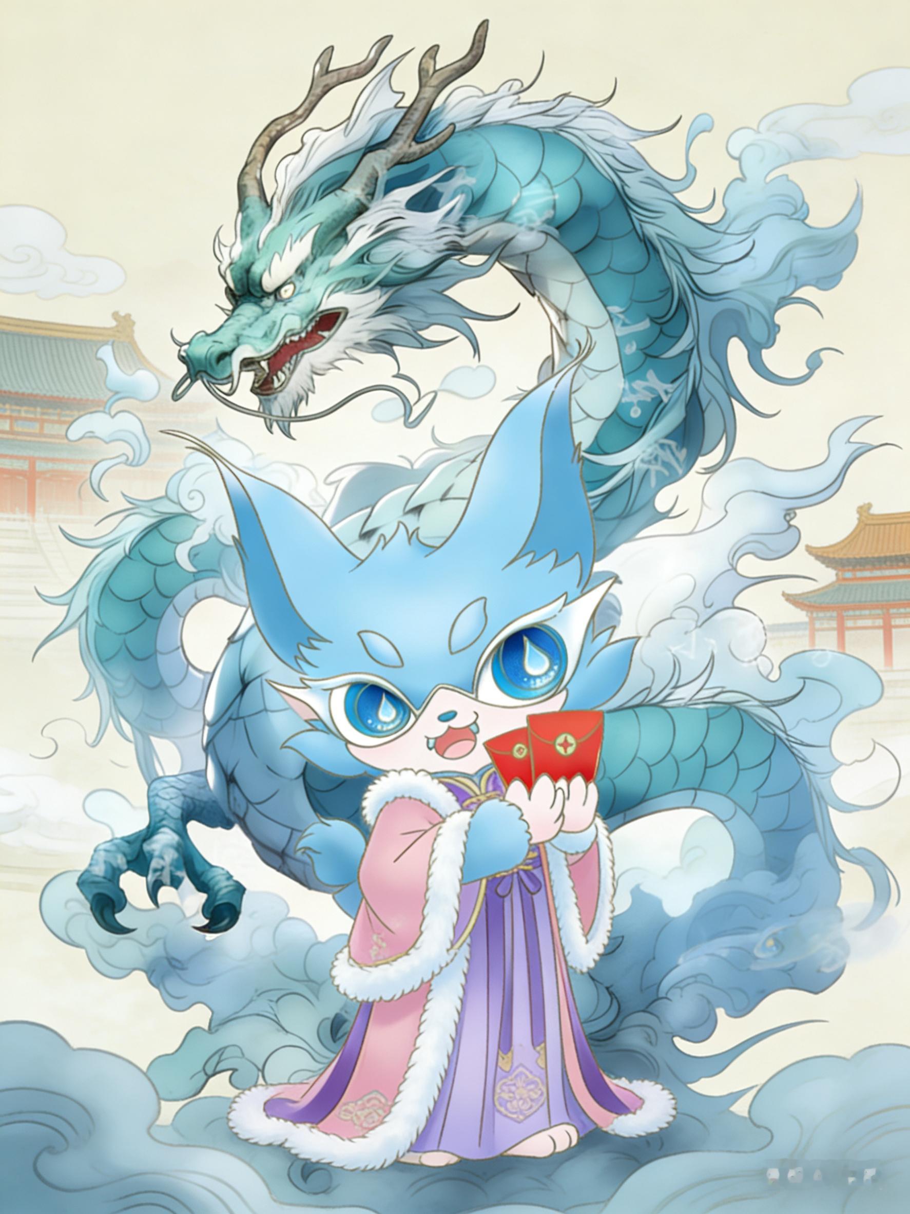 春节啦🧨上古神兽也变成古风小生🪭,春节穿上新汉服携上古瑞兽给大家拜年🧧啦!他们的祝福都带到啦:我带喵娲娲过春节