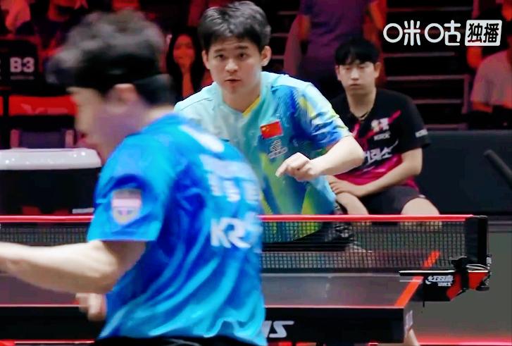 突发!林钟勋发球回抛被罚分! 林钟勋发起挑战, 结果回抛角度是32度。 第一局 林诗栋从2:5落后, 连得9球, 11:5逆转。 第二局 林钟勋3:0开局, 然后因为回抛32度直接被罚分, 林诗栋连赢5分, 5:3反超, 9:4继续领先, 11:4拿下