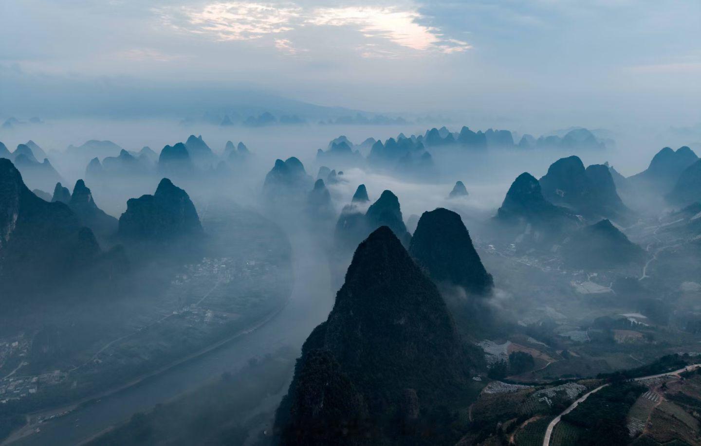 桂林旅行春天的漓江,一幅美丽的山水画! 桂林·桂林漓江景区