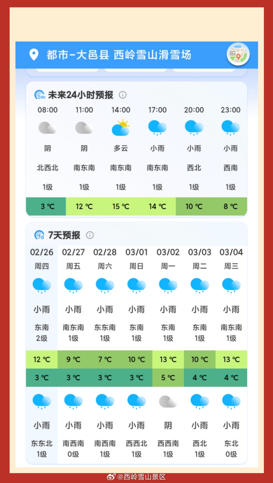 西岭雪山2月27日(十一)气象预报#西岭雪山#