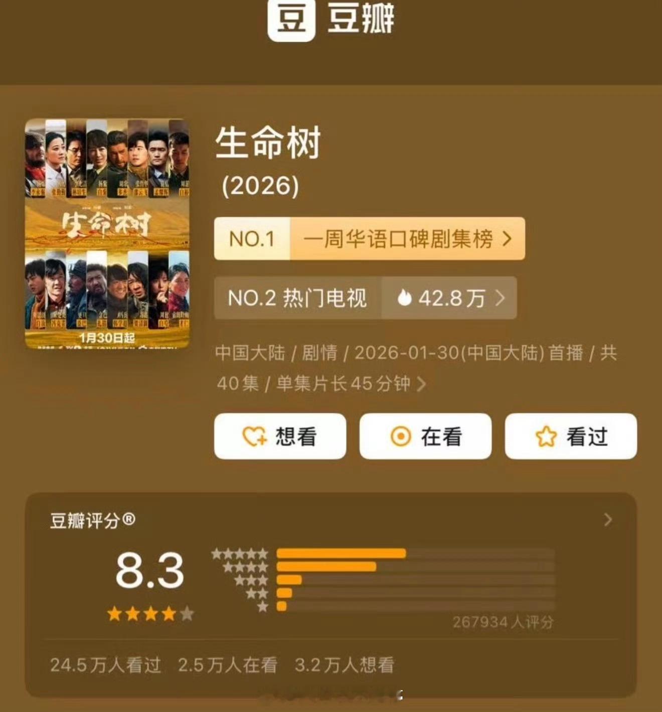 杨紫《生命树》豆瓣评分上升到8.3了,好剧果然不会被埋没