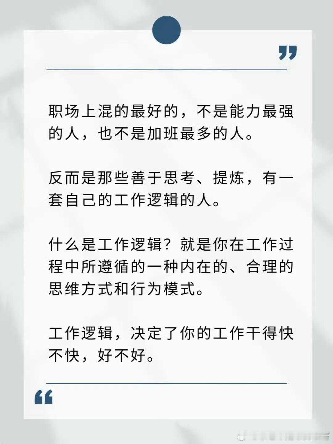 能力决定你能做什么,而工作逻辑决定你能做成什么。 🦋 总结:决策的逻辑,综合效益最大化;任务的逻辑,要事当先;执行的逻辑,先完成,再完美;沟通的逻辑,先求同,再存异;结果的逻辑,因果相续。