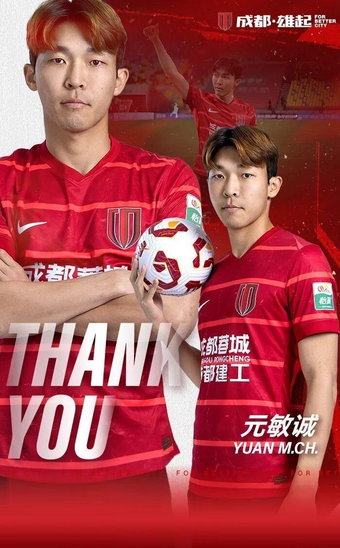 直播吧2月26日讯成都蓉城发文,祝福球员元敏诚正式离队加盟辽宁铁人。