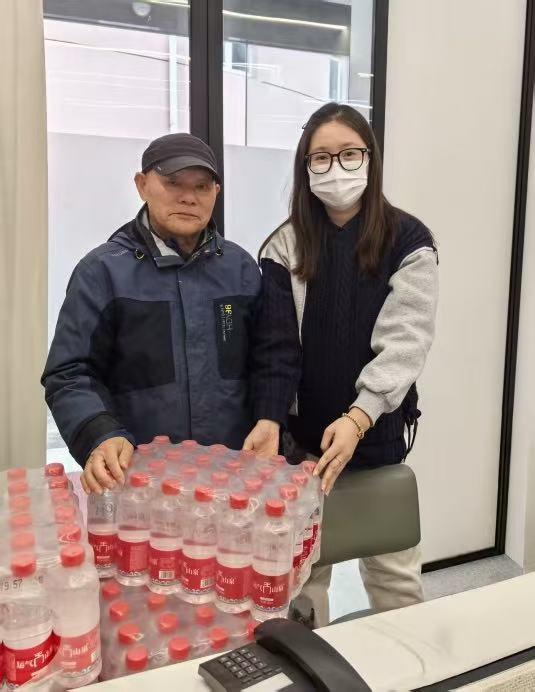 向上海出版印刷高等专科学校捐赠慰问矿泉水。云祺王(上海)数字科技有限公司供图