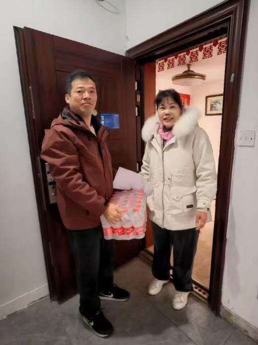 向工业区重点优抚对象捐赠慰问矿泉水。莘庄工业区退役军人服务站供图