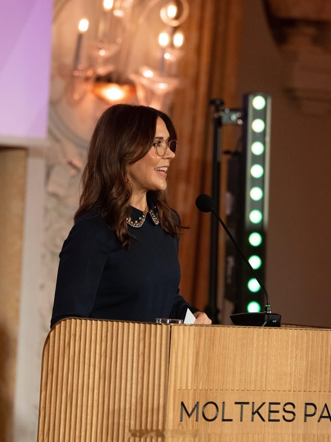 2.25 丹麦王后玛丽出席周年庆活动,裙子来自华伦天奴