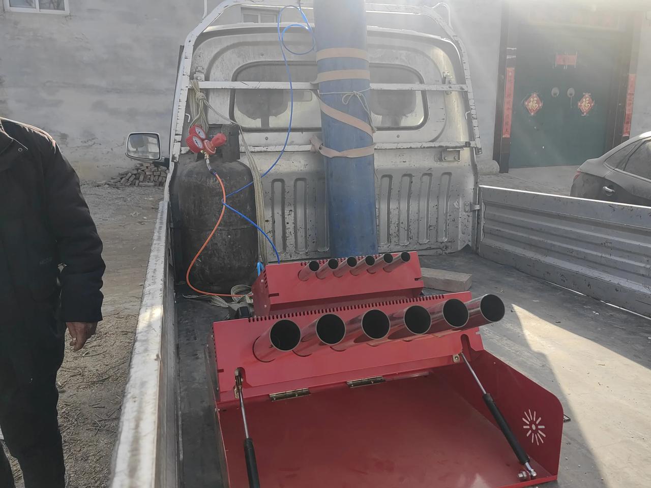 春节以前,我们村谁家有白事,最少也得买两三千块钱的烟花爆竹。 春节以后,因为禁止燃放烟花爆竹,村里就花1280块钱买了一架电子炮,谁家有白事都免费用。 自家只需一瓶氧气,一罐液化气,总费也超不过100多块钱。 虽然电子炮没有烟花爆竹效果好,好在省钱也比较安全。 这是我们村白事史上第一家,第一次使用。