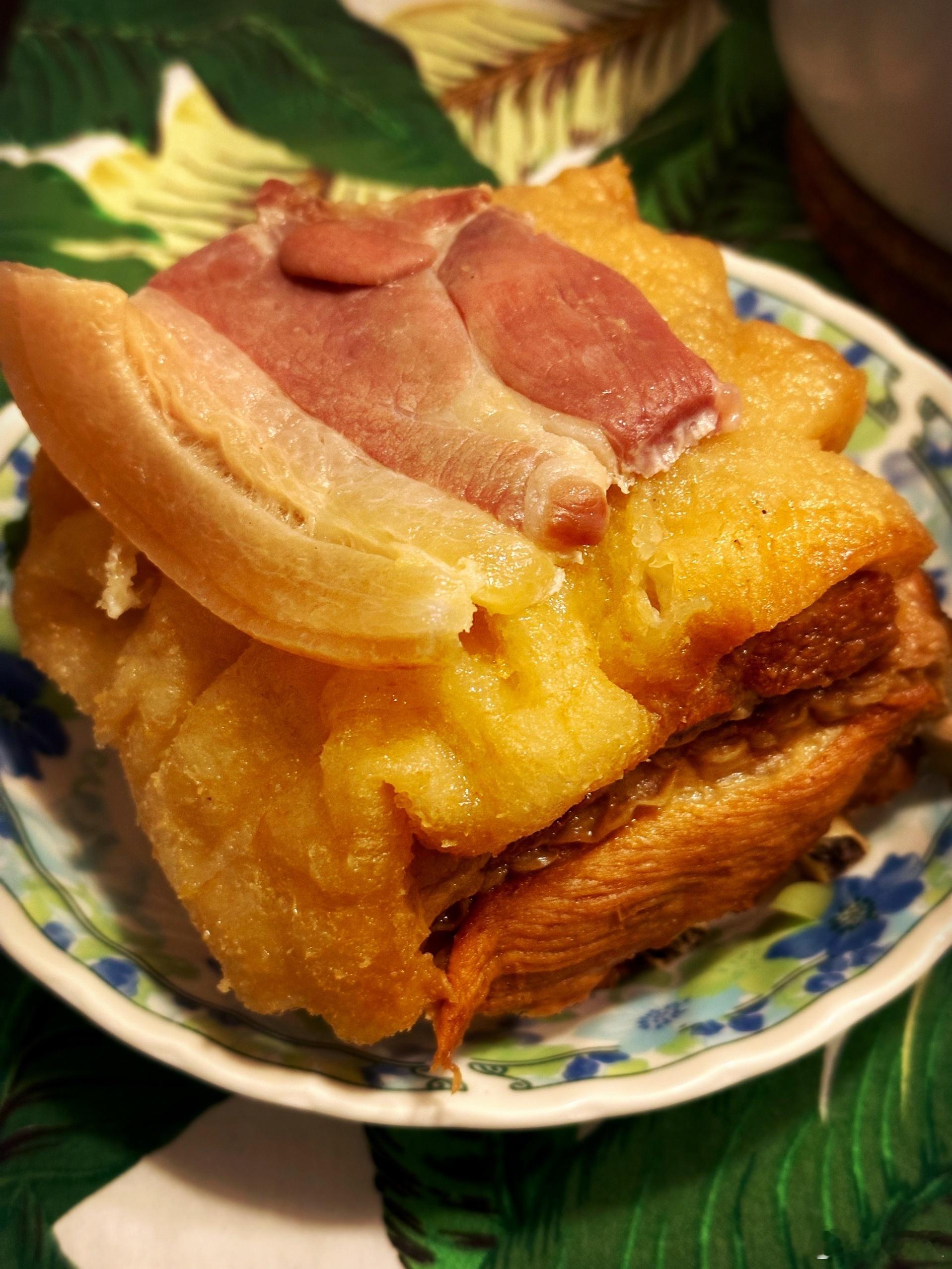 肉叠肉总归是香的。大块走油肉,带骨切不动,整块下锅加两大片诺邓火腿,煲大芥菜。清流豆皮,煎豆腐,做一只家常豆腐。好大条干煎抱盐小黄嗯。然后,又到了上海人家家户户几乎每天饭桌上都有一碟菜秸的辰光了。