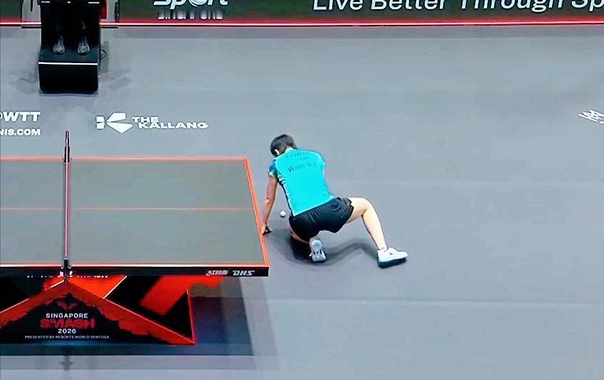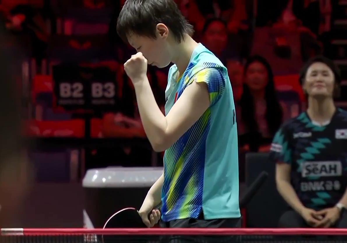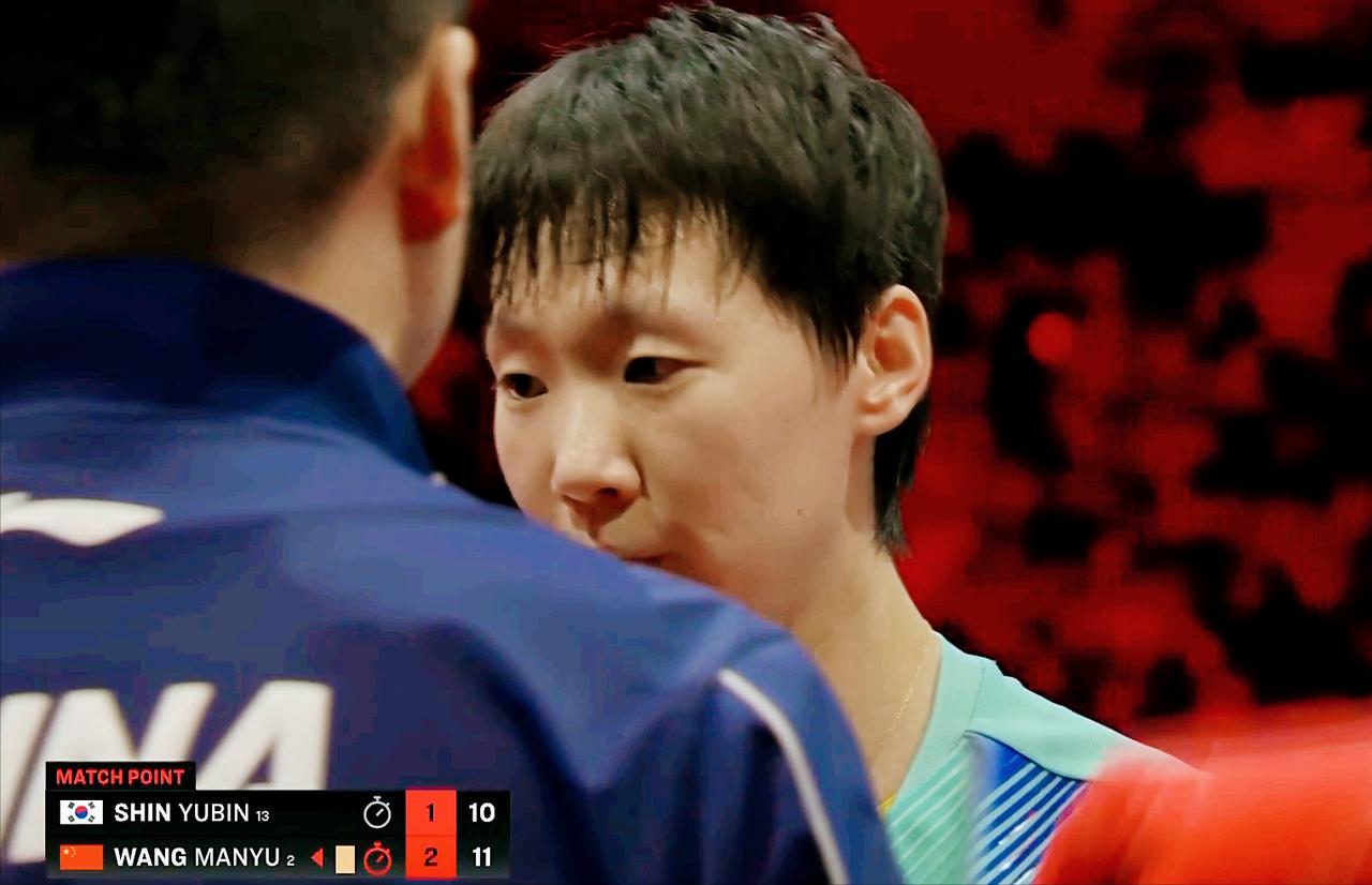 突发!王曼昱摔倒了!好在,平安无事,最后3:1拿下 第一局 王曼昱19:21输了 第二局 王曼昱11:7拿下 第三局 王曼昱11:8再下一局 第四局 两人打的胶着, 中局王曼昱落后2分, 8:8追平, 此时申裕斌一个擦网运气球, 王曼昱摔倒了。 鳗鱼10;9拿到赛点, 申裕斌又是一个擦网10:10。 鳗鱼11:10叫了暂停, 关键时刻,没有信号了, 王曼昱13:11拿下。