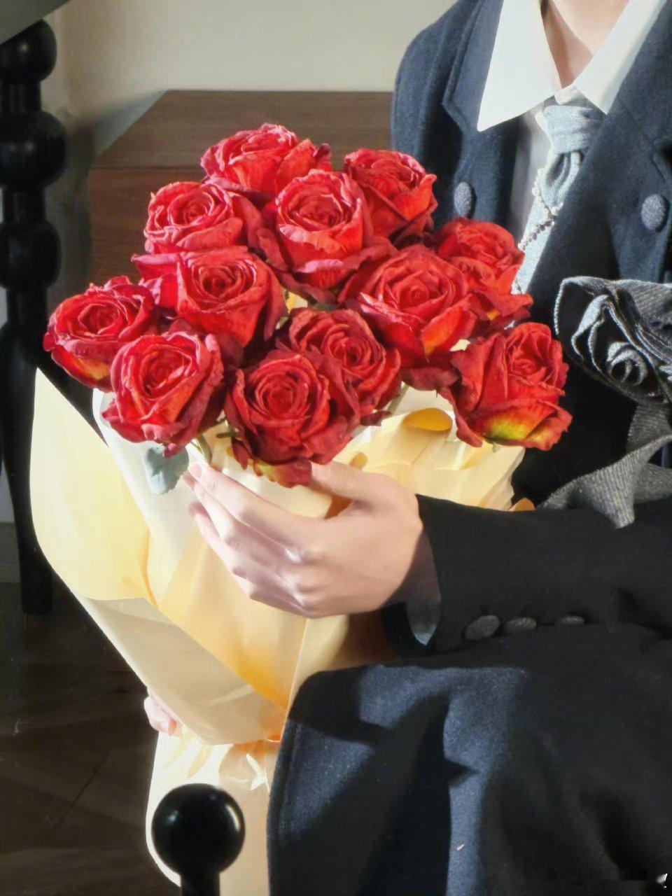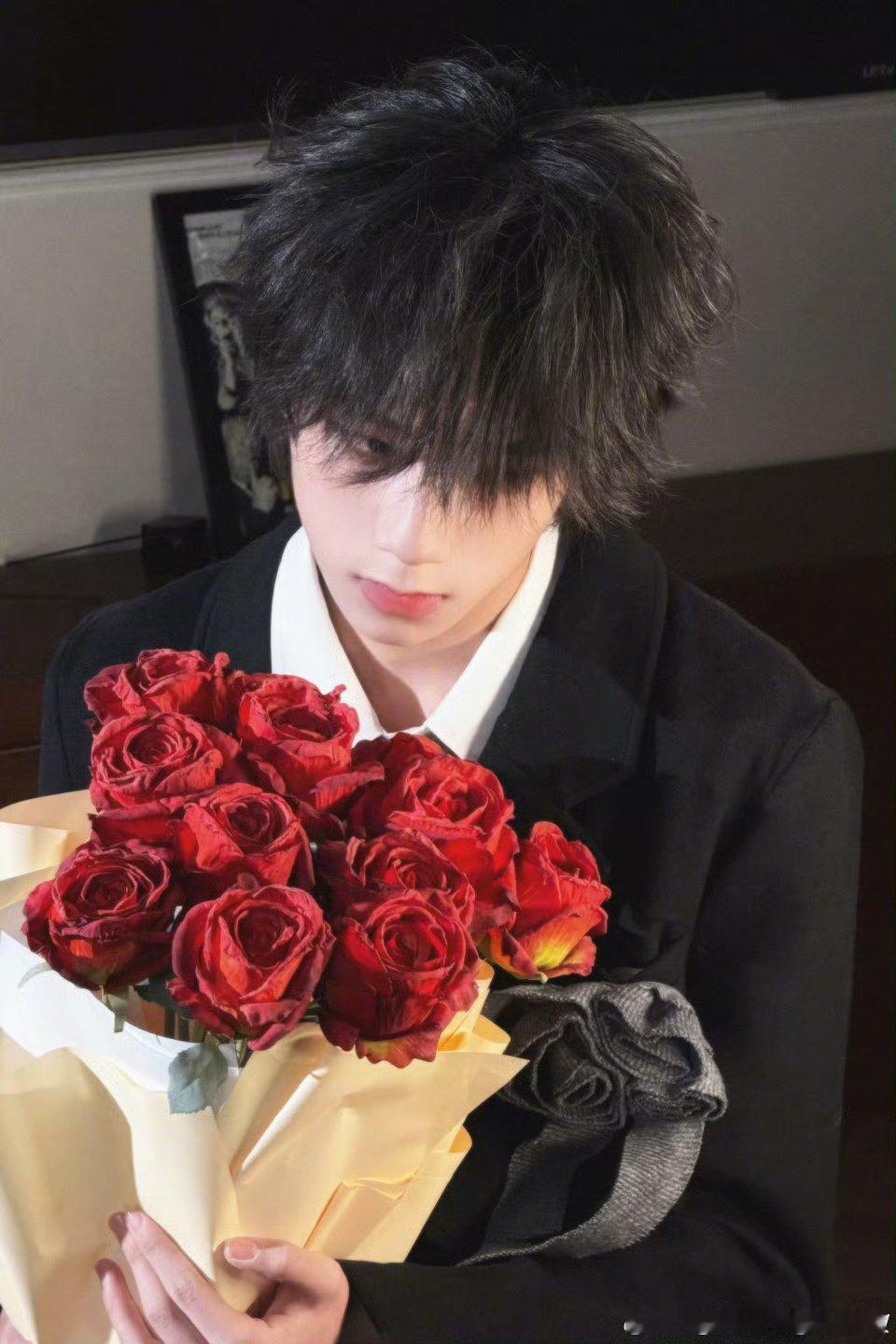王橹杰手捧红玫瑰终于营业啦,今日完全帅气满分,手捧玫瑰也太超标了,简直是手控的福