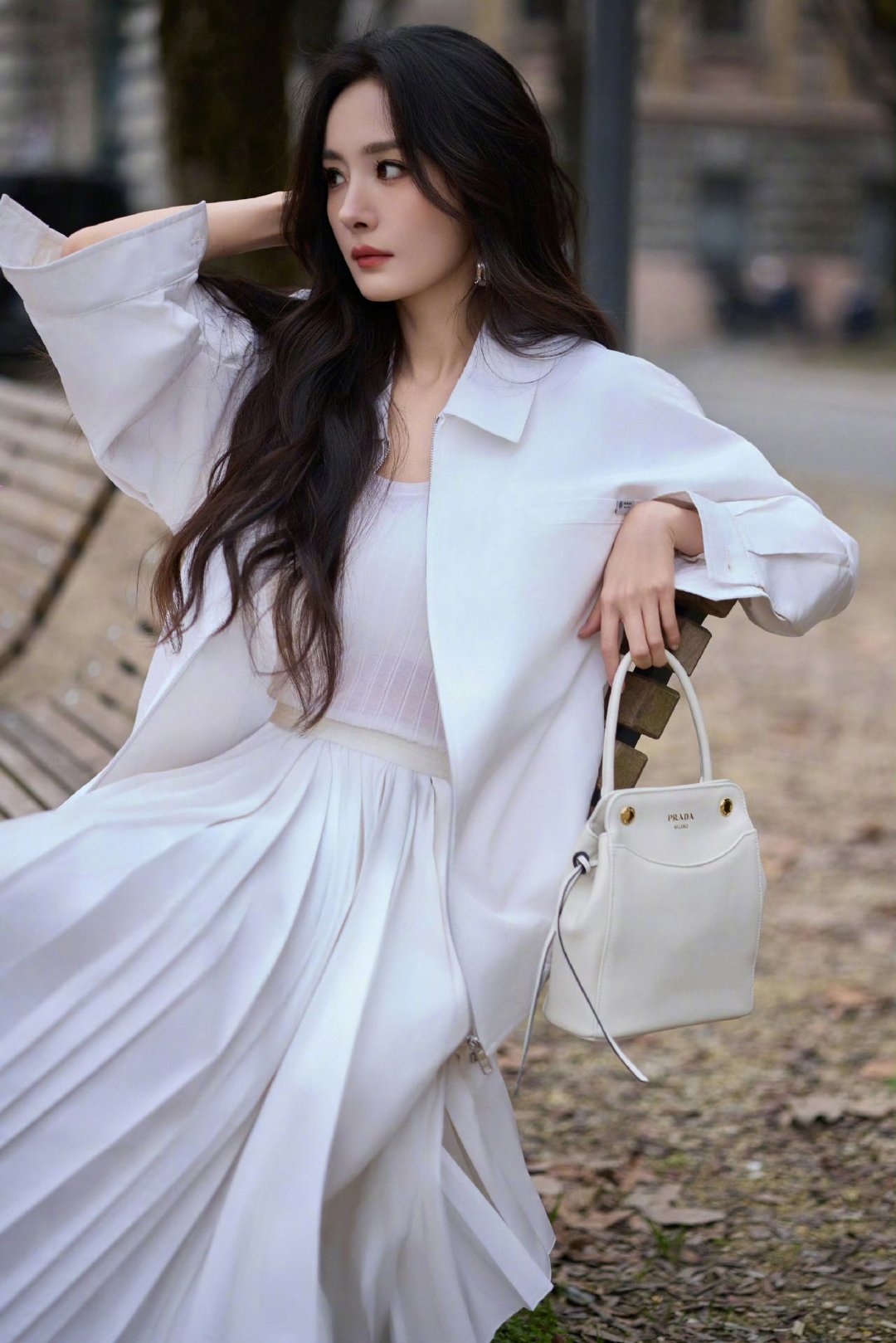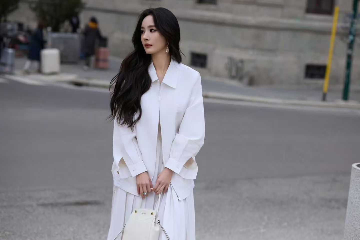 杨幂杨幂全白套装看秀杨幂∥Prada全白套装首穿看秀夏日系列白色套装即将亮相今晚