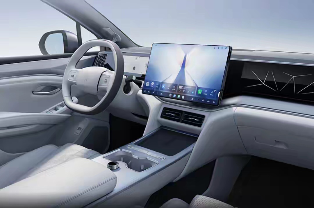 整体设计和宋L DM-i差不多,但新出的浅色内饰看着就很舒服,双拼色两辐方向盘+滚轮按键,比一堆物理按键清爽多了。悬浮式大屏边框超窄,不管是导航还是追剧,沉浸感直接拉满。
