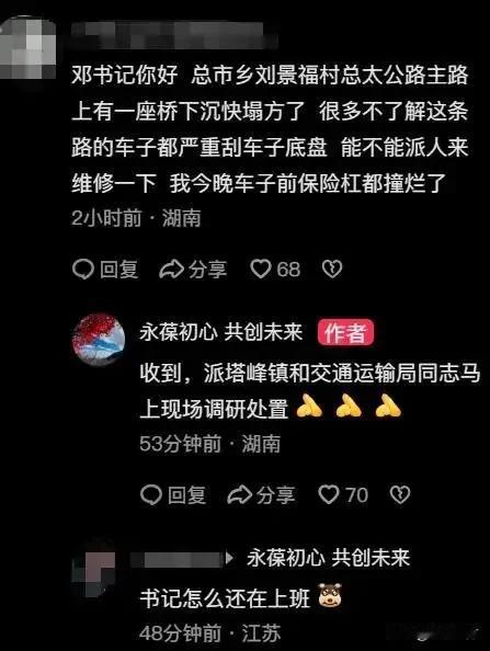 美国总统特朗谱不时在网络发声,因而被戏称为“推特治国”。如今湖南省也有一位干部通过抖音账号与民众交流互动,听取民众声音,高效回复处理民情。[赞] 说起来我们进入网络社会已经有些年头了,但是愿意使用网络与大家直接沟通的并不多见,听到更多的则是“网络不是法外之地”的谆谆告诫,好象是网络是什么洪水猛兽。[笑哭]说到底网络是个高效便捷的工具,想用好它它就会是沟通的快速通道;不想用它就是森严壁垒的墙。向这位积极投身网络的试水者致敬。[祈祷][赞]