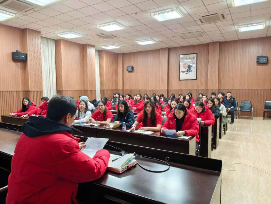 2月26日,在福建省游泳跳水运动管理中心贵安训练基地集训的国家女子水球队、国家青年女子水球队共同学习了《中共中央国务院致第25届冬奥会中国体育代表团的贺电》精神。