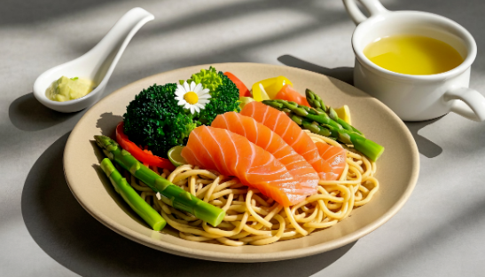 鲈鱼加姜葱蒸熟,淋少许蒸鱼豉油;西蓝花、胡萝卜焯水摆盘。优质蛋白+多种维生素,让身体从“修复模式”平稳过渡到“日常模式”。