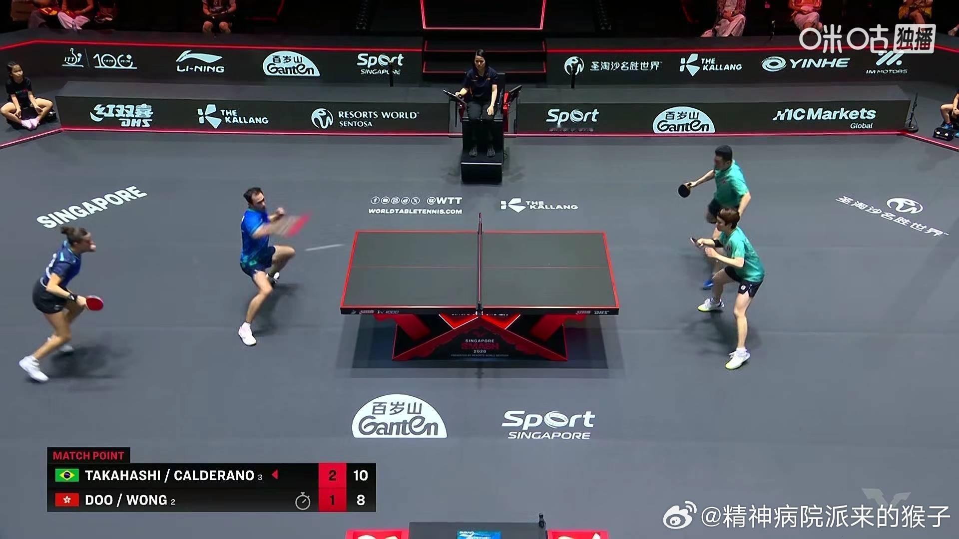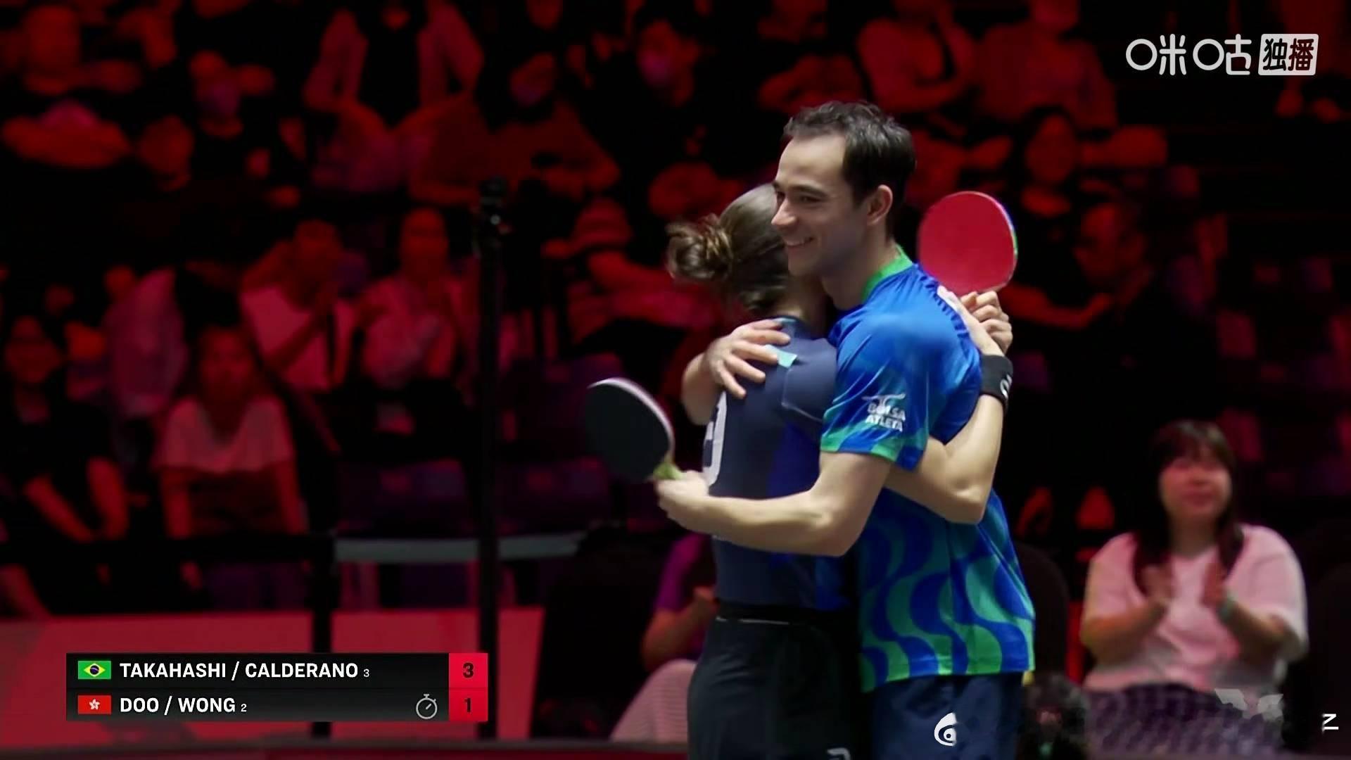 雨果布鲁纳3比1黄镇廷杜凯琹(-9,8,9,8)晋级2026WTT新加坡大满贯混双决赛决赛:雨果布鲁纳🇧🇷VS林钟勋申裕斌🇰🇷