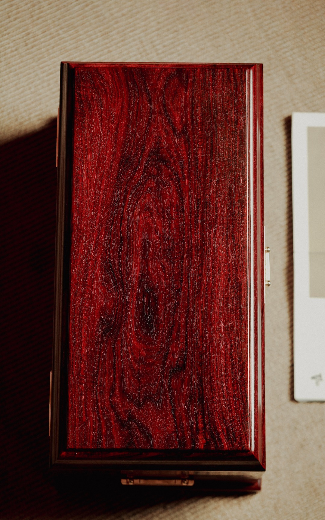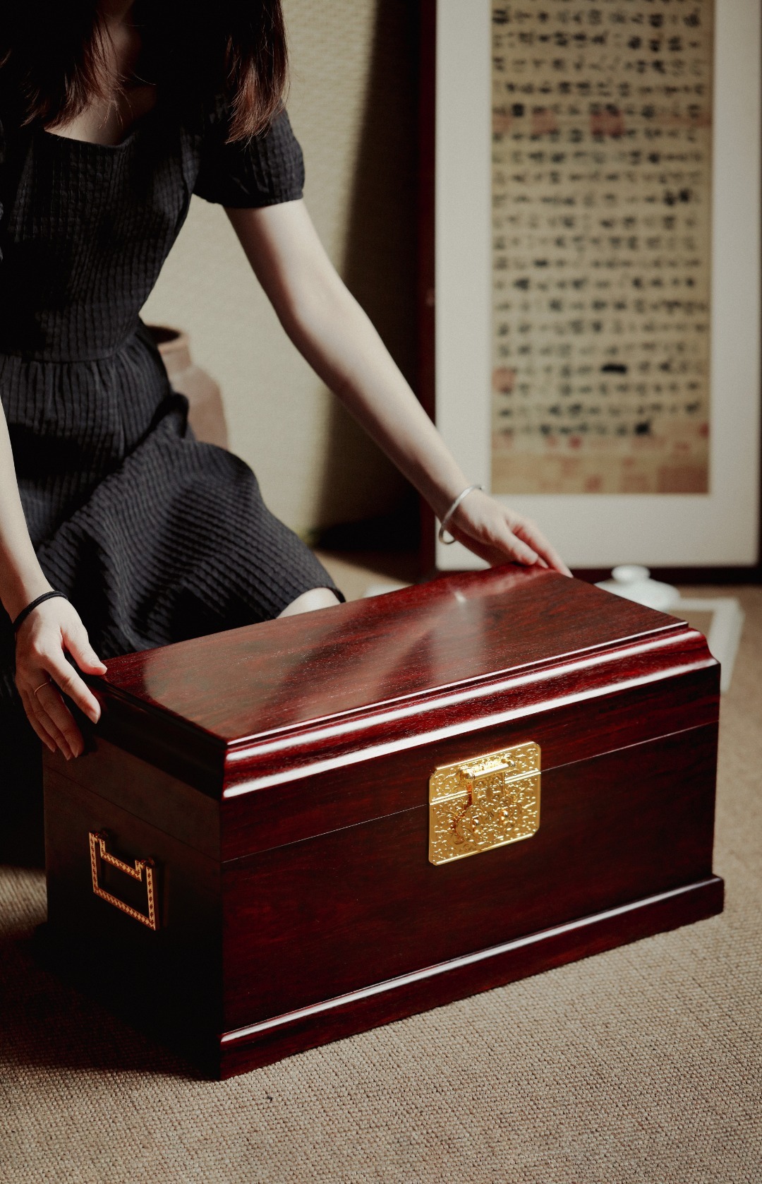 甄选优质老料独板一木制,二膘料全独板 四周厚度实1.1cm 顶部独面板宽达21.5cm 长47.5cm 实属难得,光泽质感上佳。上箱分格,双层设计,收纳零整有序,整体素美实用。从业3-5年能碰到如此一个精品真是三生有幸! 收藏佳品!