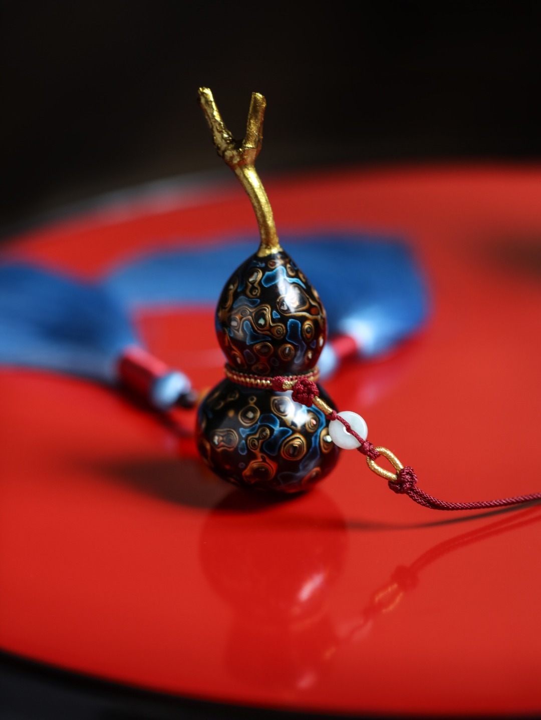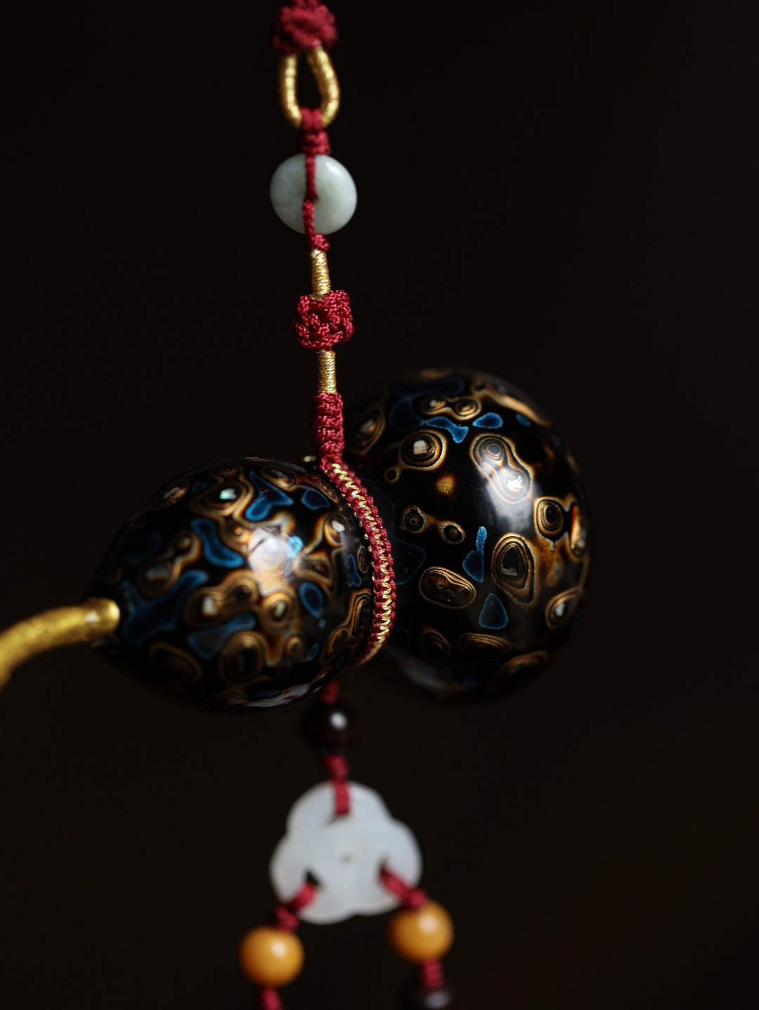 家有葫芦一个,一生福禄平安!选取天然葫芦,手工髹蓝金大漆,色泽复古,绚丽灿烂。