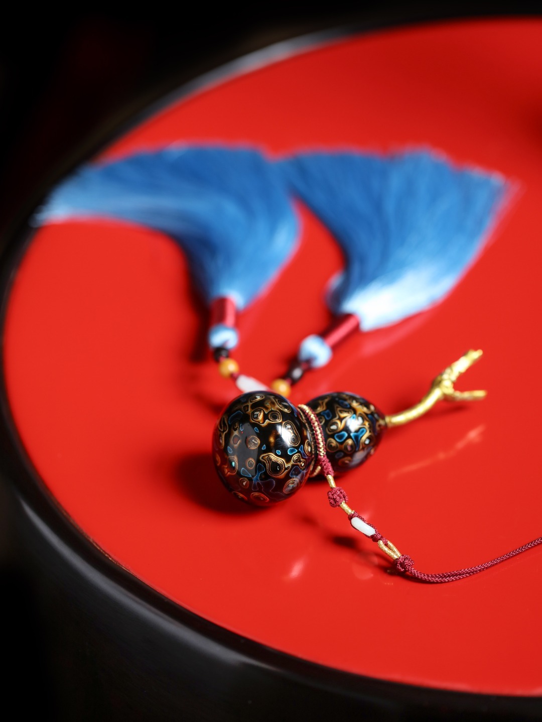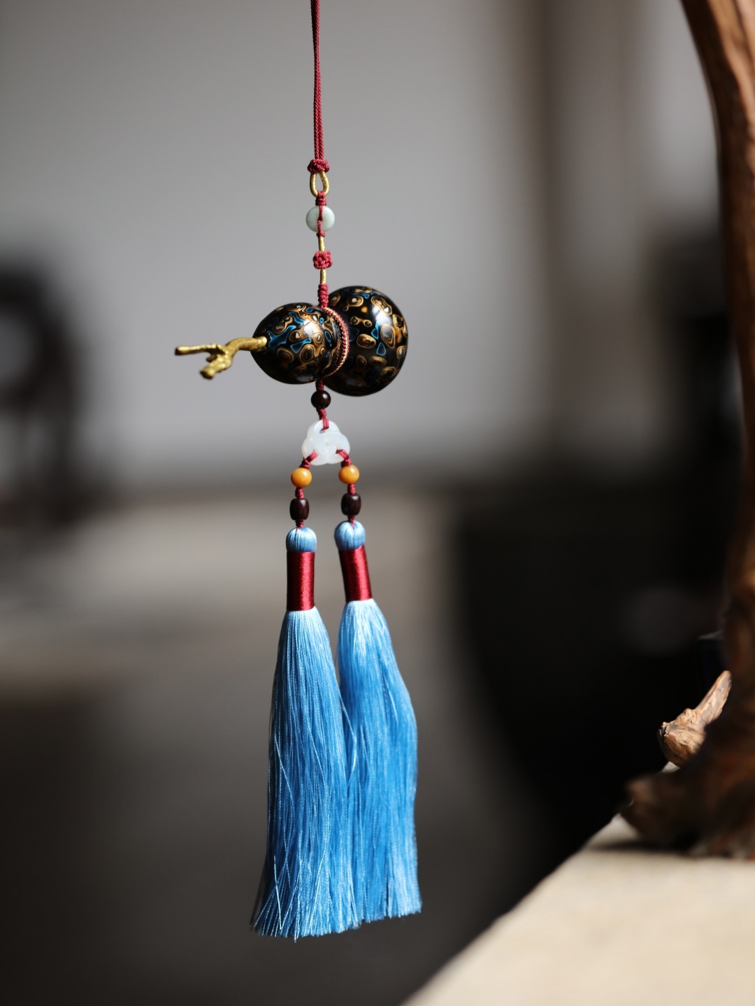 3.7*10cm 长约50cm 重29g 大漆·黑金蓝【福禄】挂件