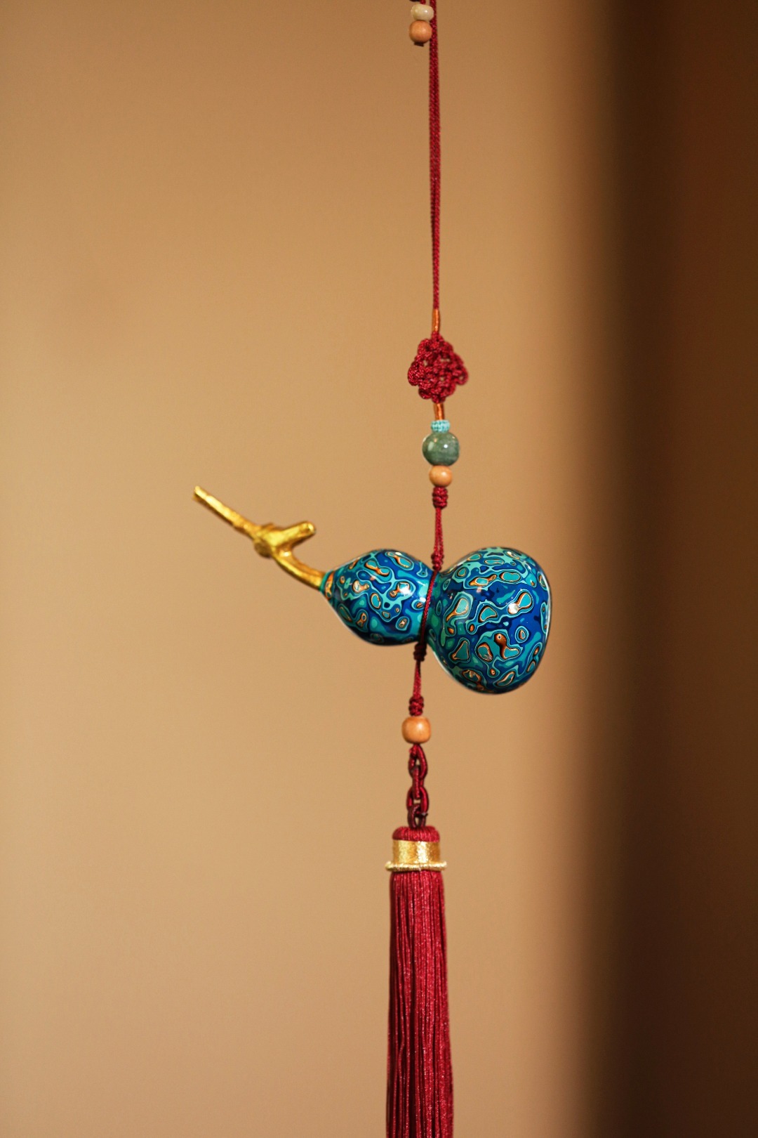 葫芦,一生福禄平安!选取天然葫芦,手工髹青金蓝大漆,色泽复古,绚丽灿烂。
