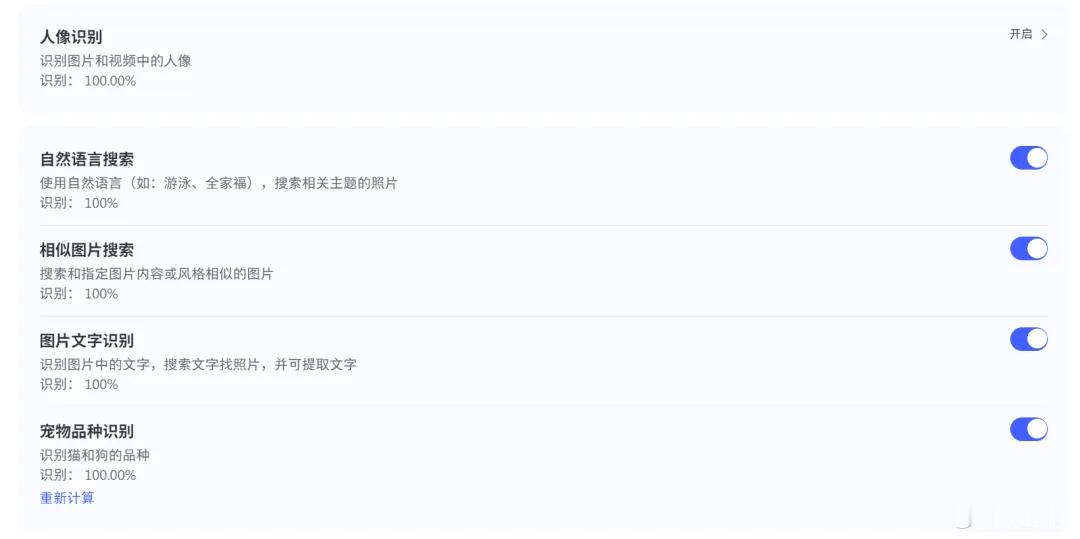 无需复杂的技术设置,长辈也能在简单引导下查看共享内容。除此之外,极空间Z2Pro还具备强大的AI识别能力,照片存入后,系统会自动按人脸、场景、地点、时间、节日等维度分类,方便用户查找,还可以通过关键词进行照片搜索,连图片里的手写笔记和批注都能瞬间找到,对于生活和工作来说都是一大利器。NAS