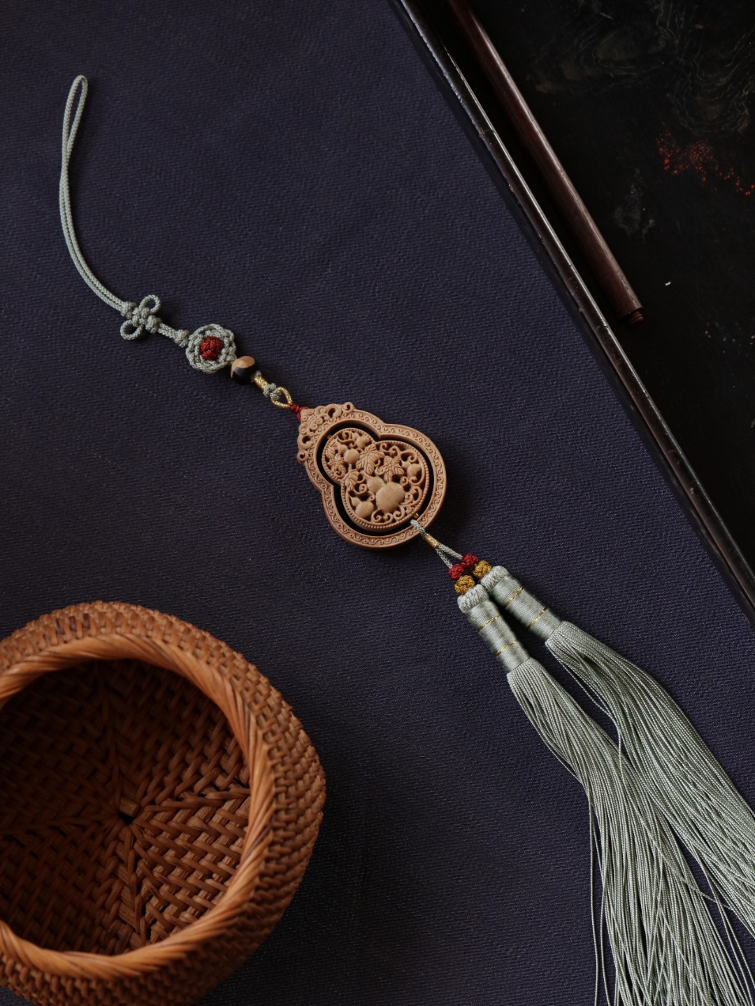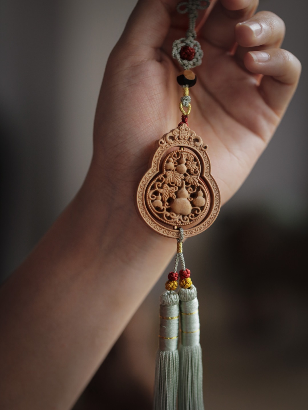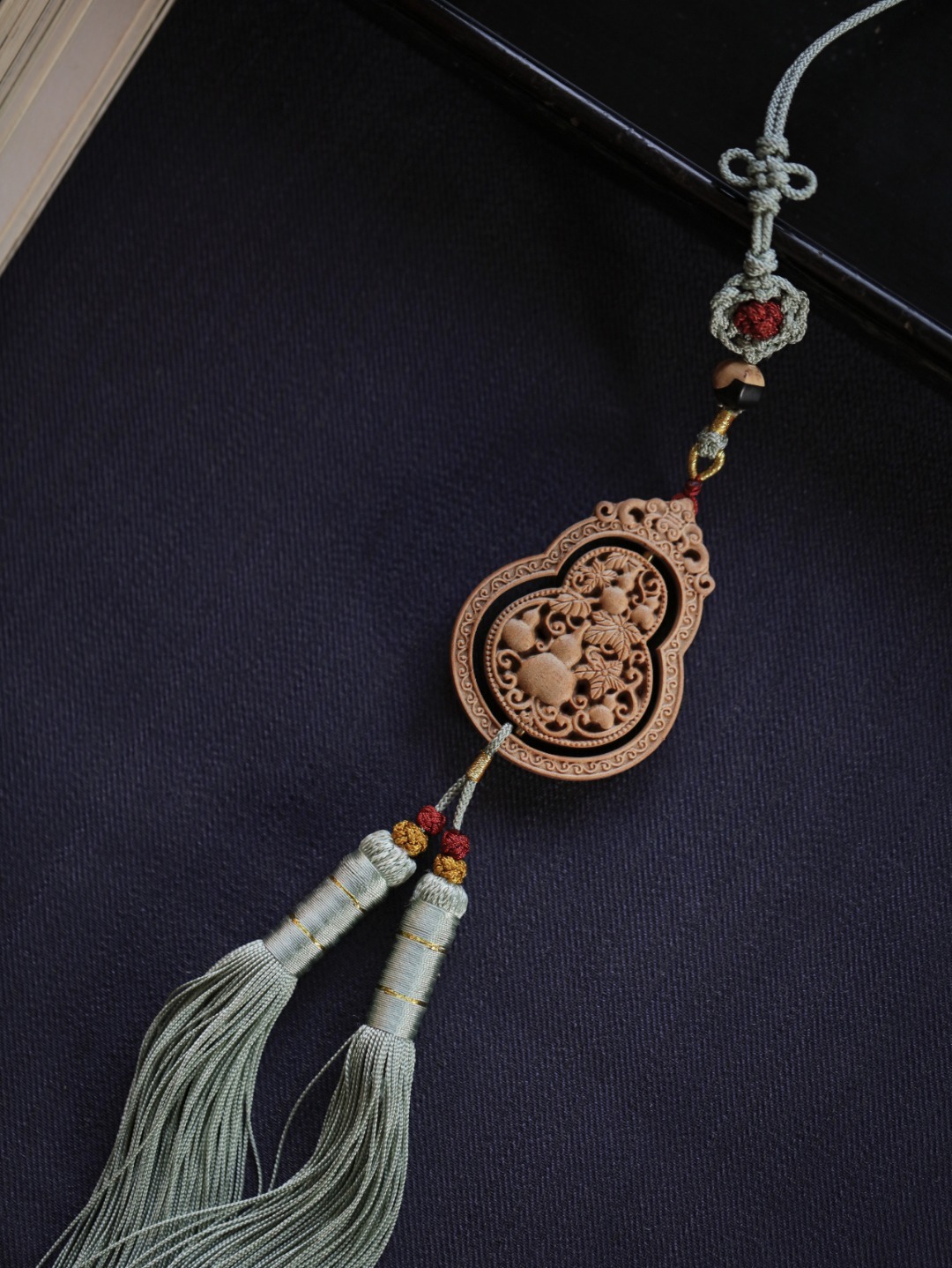 “葫芦者,福禄也。”双面镂雕,活扣可旋转,极具宫廷韵味,原创设计,可做车挂、包挂等
