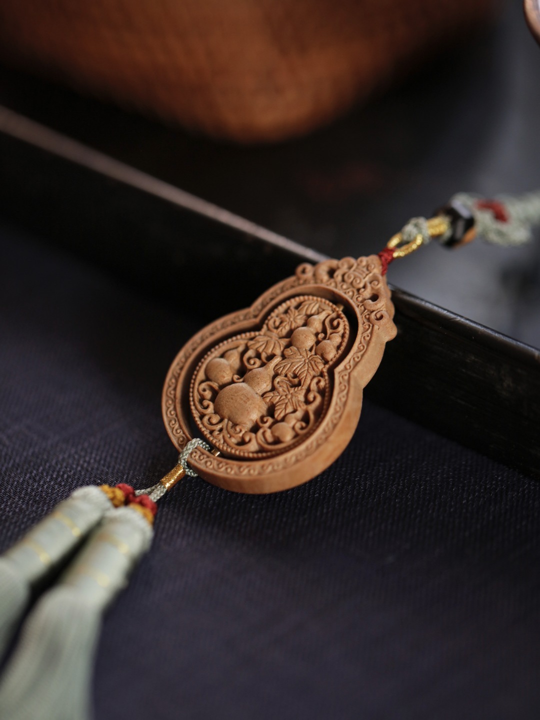 老山檀香 | 福禄 · 挂饰“葫芦者,福禄也。”双面镂雕,活扣可旋转,极具宫廷韵