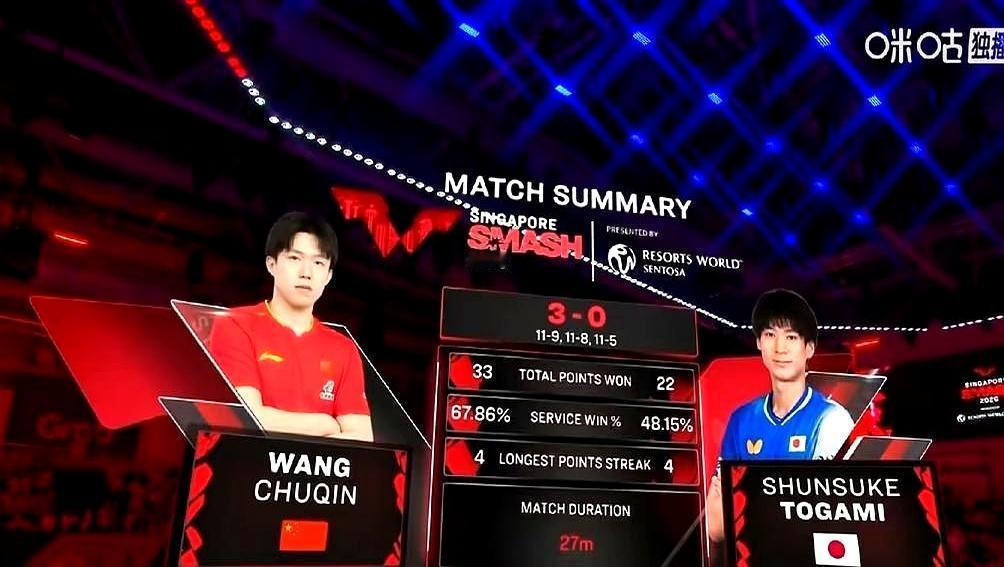 刚刷完王楚钦打户上隼辅,这哪是打球?是精准卡着985分数线虐菜! 第一局开局8-1猛冲,被追到9-8都稳得住,鹰眼拍的35.92°发球违规都没晃他。 第二局7-2压着打,第三局直接11-5收工,全程28分钟,7战全胜的纪录续得死死的。 别忘了这小子刚在亚洲杯逆转林诗栋,碰到王楚钦连半点挣扎的余地都没有。 这哪里是赛场拼杀?是顶尖学霸的实力秀:不是你不够努力,而是对手的天花板是你摸不到的地板;不是你没机会翻盘,而是他想让你拿几分就拿几分;不是你不够优秀,而是在绝对实力面前,所有挣扎都苍白无力。