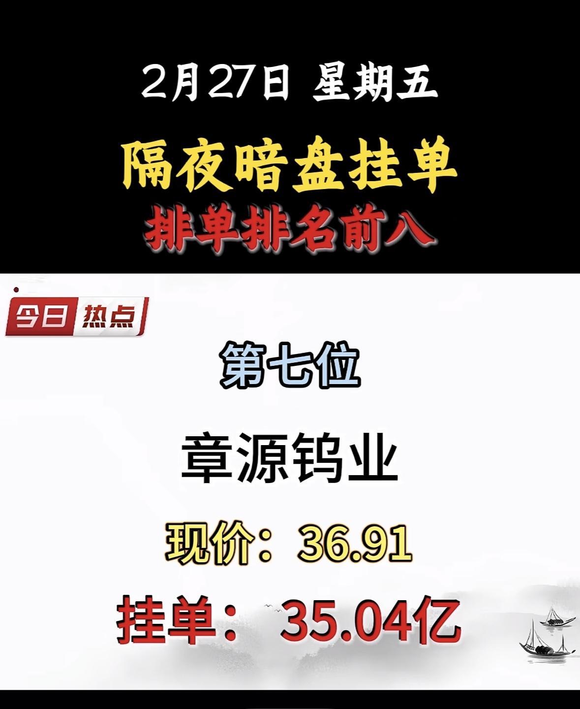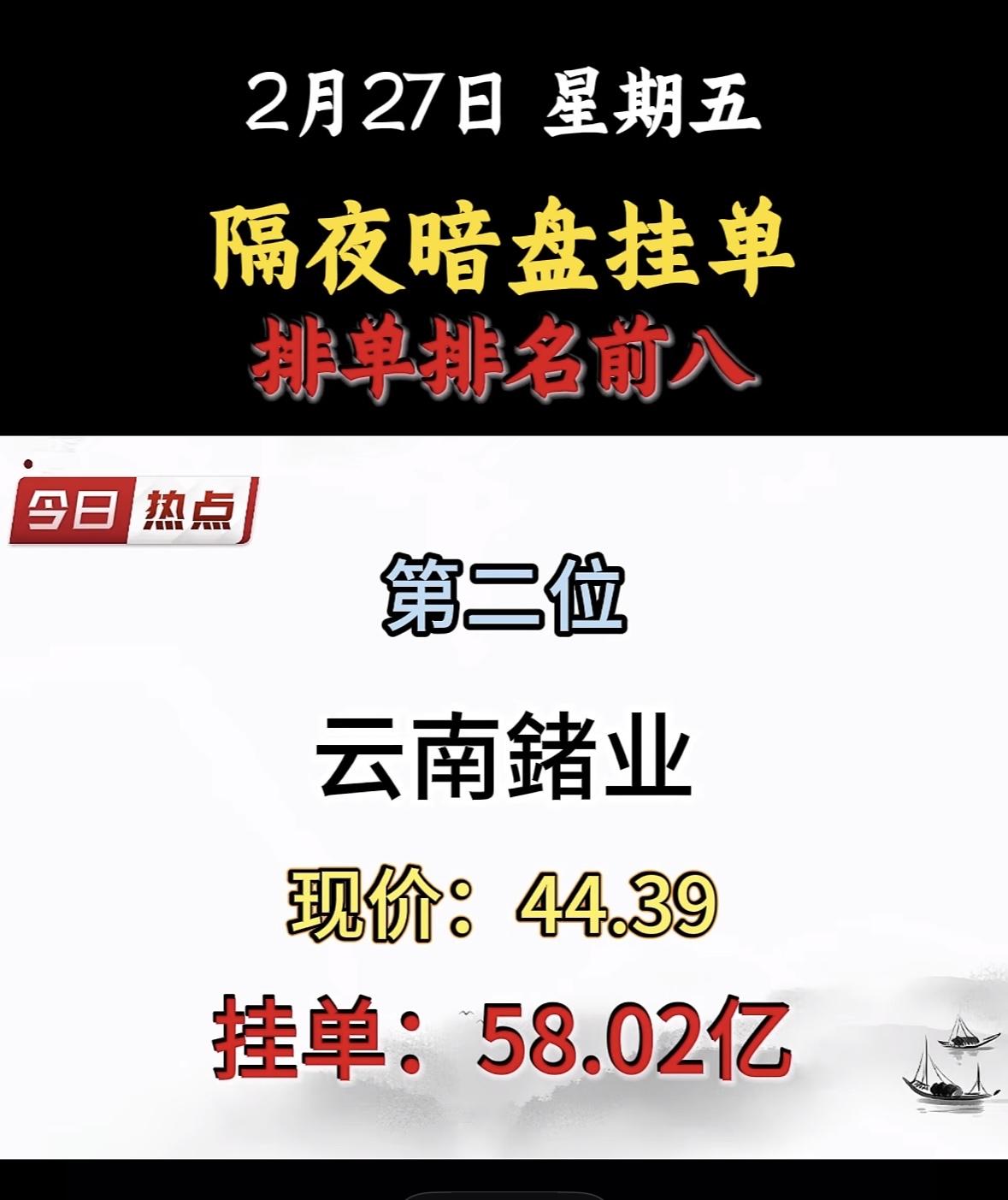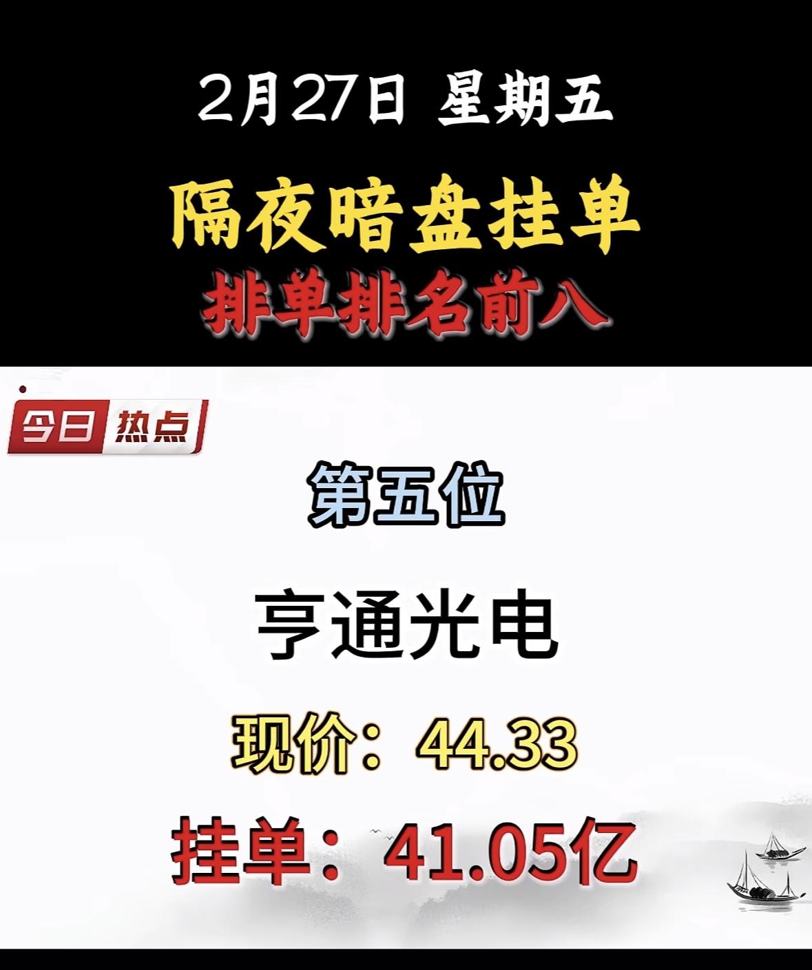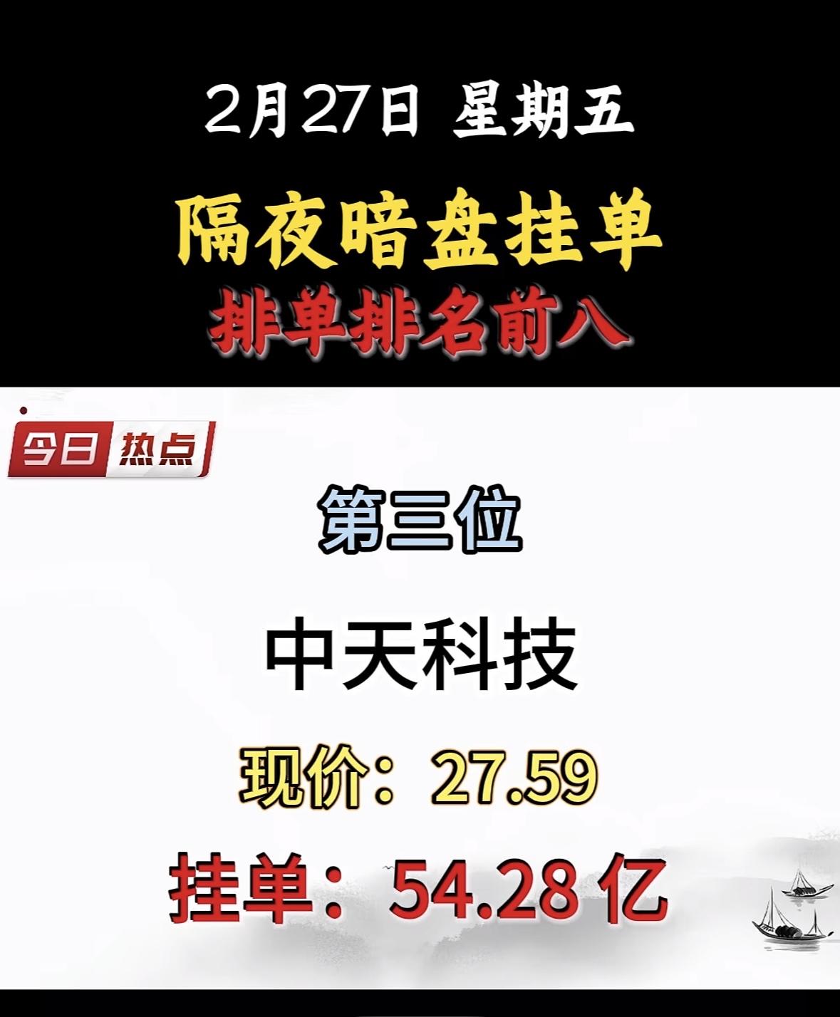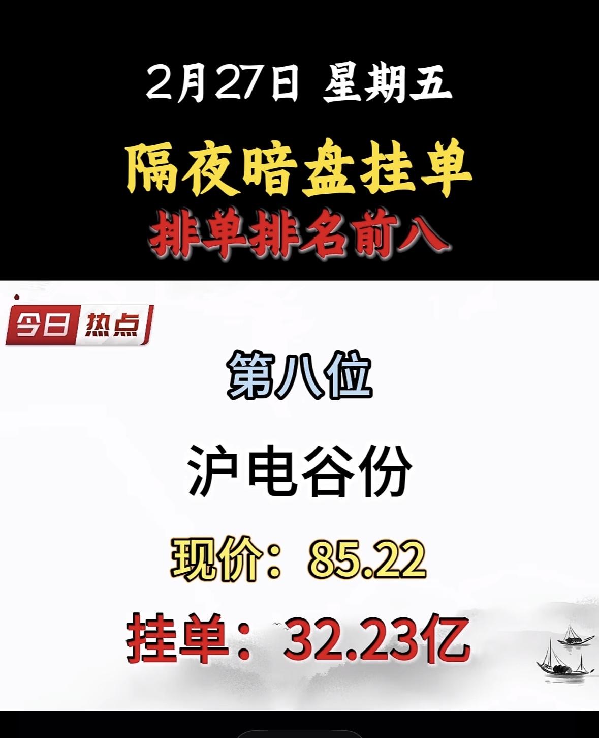 2月27日暗盘隔夜挂单沪电谷股份现价85.22,挂单32.23亿,强势上榜! 全网最新数据前8位揭晓。