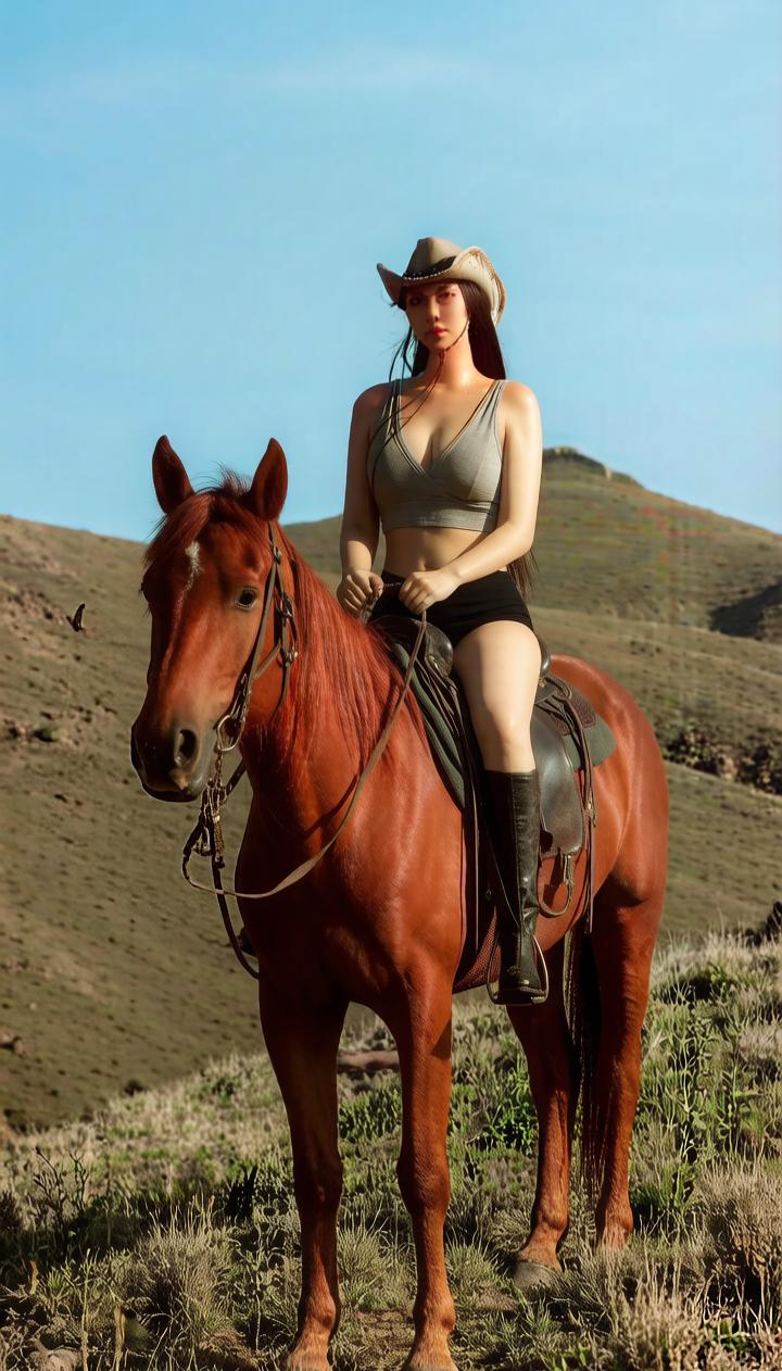 《草原的守望者》 风从草甸漫上山岗,带着河湾的潮气、草叶的腥甜,还有远处营地里若有若无的、牛粪燃烧的烟火气,那是家的方向。靴底碾过沾着晨露的草茎,她走过河湾,登上山岗,牛仔帽檐压得很低,却遮不住眼中比远山更辽阔的坚定——那是草原女儿淬过火的光,是对这片疆域的滚烫誓言。 短衣勾勒出她优美彪悍的线条,黑靴陷在草甸里,沾着细碎的草屑,仿佛不是穿在脚上,而是从这土地里生长出来的力量。她牵着枣红马,目光越过蜿蜒的河水,巡视着远山熟悉的轮廓——那里有她放牧的踪迹,守护的草场,有家族世代相传的边界。枣红马垂首轻嗅,鼻息喷在她的手腕上,温热而粗粝,像大地的心跳,它的耳尖微微转动,更先捕捉到风里的异动,蹄下的草叶簌簌,是草原在低声絮语,也是它与主人无声的盟约。 她从不掩饰自身的美丽,那是与草原共生的野性之美——汗水顺着脖颈滑落,在阳光下泛着蜜色的光,风与阳光把她的皮肤揉得微红,像山岗裸露的岩石。这美丽,不是用来取悦的装饰,而是她作为草原守望者的勋章:守护河湾水清人洁,护佑草原春绿秋黄,把对家园的爱与责任,融进每一次呼吸里。 忽见草甸远处有几只兽影闪过,不象是羊。她猛地纵身上马,靴跟果断一磕马腹。枣红马低嘶一声,脊背便成了她的疆场。山岗在脚下退去,风在耳畔猎猎作响。她与这生灵共舞——缰绳轻提,指尖触到马颈贲张的血脉,心跳与马蹄叠奏在一起,是草原亘古至今的旋律。山峦沉静如祖先的目光,云影在小河上流淌,她与枣红马在天地之间履行着诺言。 风记得她来过,马感受她的温度,而这片草原,会永远为她留着通往疆界的路。在每一个晨昏,总有一个美丽的身影,用滚烫的生命,守护着这片疆域和身后,那座座炊烟升起的毡房。