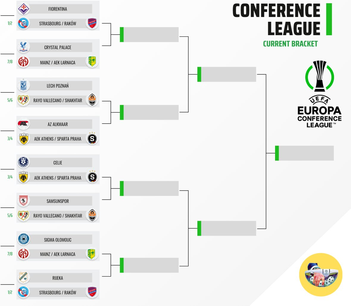 其中,佛罗伦萨与斯特拉斯堡、水晶宫与美因茨都有可能在本轮展开五大联赛球队之间的对决。