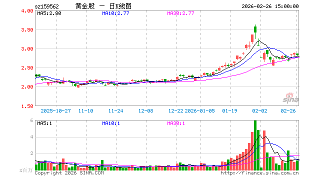 2月26日,黄金股ETF(159562)跌1.64%,成交额3.10亿元。当日份额减少3000.00万份,最新份额为26.92亿份,近20个交易日份额增加9.06亿份。最新资产净值计算值为76.13亿元。