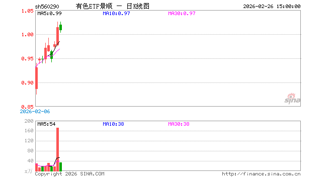 有色ETF景顺(560290)业绩比较基准为中证有色金属矿业主题指数收益率,管理人为景顺长城基金管理有限公司,基金经理为龚丽丽,成立(2026-01-26)以来回报为0.72%。
