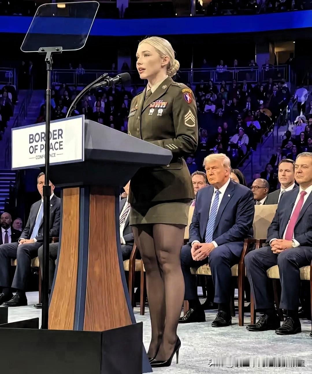 不得不说特朗普…… 特朗普虽然年事已高,但眼光确实独到,很懂得挑选能引发关注、自带气场的嘉宾。 近期他特意邀请了一位容貌出众、气质飒爽的女兵来到白宫公开亮相并发言,这位女兵不仅颜值亮眼、仪态大方,更兼具军人的干练、沉稳与正气,一出场就成为全场焦点,镜头感与感染力拉满。 特朗普在现场对她给予公开肯定与赞扬,现场掌声不断,气氛十分热烈,不少观众都被这位女兵的英姿与风采深深打动。 不得不说,特朗普很擅长挑选有话题度、有记忆点的嘉宾,既能展现军人风貌,又能让活动热度拉满,传播效果十分突出,这波操作确实很有看点。 我觉得吧,不管是啥活动,嘉宾长得好看、有话题度确实能吸引人,但能站得住脚的,还是实力和正气。 军人最可贵的是使命、担当和奉献,不是外表。 把军人形象拿来娱乐化、看颜值,其实是淡化了这份职业的严肃和崇高。 公共活动本来是传递正能量、凝聚人心的,不是单纯博流量。 真正能让人记住、能长久影响人的,从来不是靠外表博眼球,而是靠正确的价值观和实实在在的内容,这才是最有分量的。 友友们,你们有什看法欢迎评论区留言
