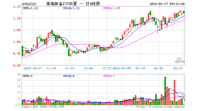 2月27日,高端装备ETF华夏(516320)开盘跌0.18%,报1.128元。高端装备ETF华夏(516320)重仓股方面,宁德时代开盘涨0.32%,阳光电源跌0.45%,中国船舶跌0.29%,汇川技术跌0.37%,三一重工涨0.39%,特变电工跌1.08%,隆基绿能跌0.55%,徐工机械跌0.16%,思源电气跌2.00%,潍柴动力跌3.83%。