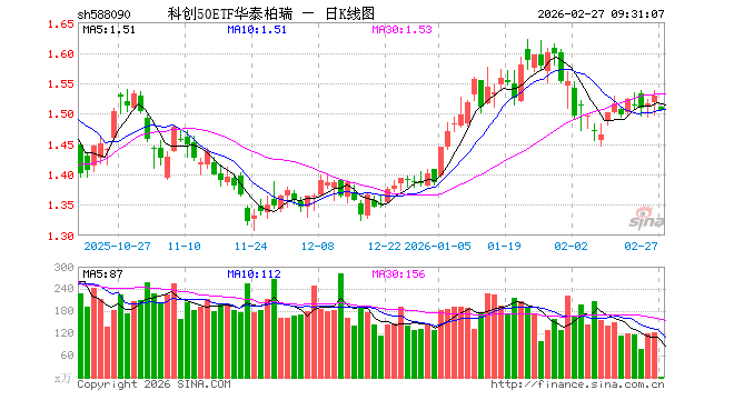 2月27日,科创50ETF华泰柏瑞(588090)开盘跌1.18%,报1.511元。科创50ETF华泰柏瑞(588090)重仓股方面,中芯国际开盘跌1.39%,寒武纪跌2.03%,海光信息跌2.26%,澜起科技跌1.59%,中微公司跌1.63%,金山办公跌1.00%,联影医疗跌0.01%,拓荆科技跌1.53%,芯原股份跌1.80%,沪硅产业跌0.68%。