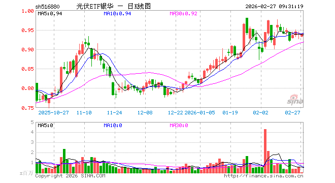 2月27日,光伏ETF银华(516880)开盘跌1.06%,报0.931元。光伏ETF银华(516880)重仓股方面,特变电工开盘跌1.08%,隆基绿能跌0.55%,阳光电源跌0.45%,TCL科技涨0.41%,迈为股份跌0.38%,德业股份跌0.03%,正泰电器跌0.21%,TCL中环跌0.88%,捷佳伟创跌0.55%。
