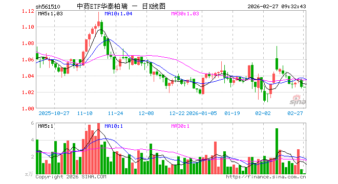 2月27日,中药ETF华泰柏瑞(561510)开盘涨0.00%,报1.026元。中药ETF华泰柏瑞(561510)重仓股方面,云南白药开盘跌0.11%,片仔癀涨0.12%,东阿阿胶涨0.02%,同仁堂跌0.03%,华润三九涨0.03%,吉林敖东涨0.00%,白云山涨0.00%,以岭药业涨0.00%,达仁堂涨0.00%,众生药业涨0.05%。