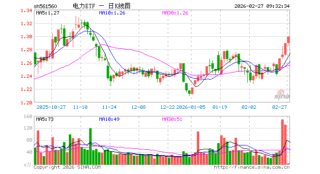 电力ETF(561560)业绩比较基准为中证全指电力公用事业指数收益率,管理人为华泰柏瑞基金管理有限公司,基金经理为尤家妤,成立(2022-04-26)以来回报为28.62%,近一个月回报为1.35%。