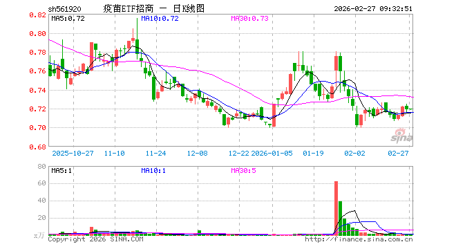 疫苗龙头ETF(561920)业绩比较基准为中证疫苗与生物技术指数收益率,管理人为招商基金管理有限公司,基金经理为廖裕舟,成立(2023-03-15)以来回报为-27.99%,近一个月回报为-6.64%。