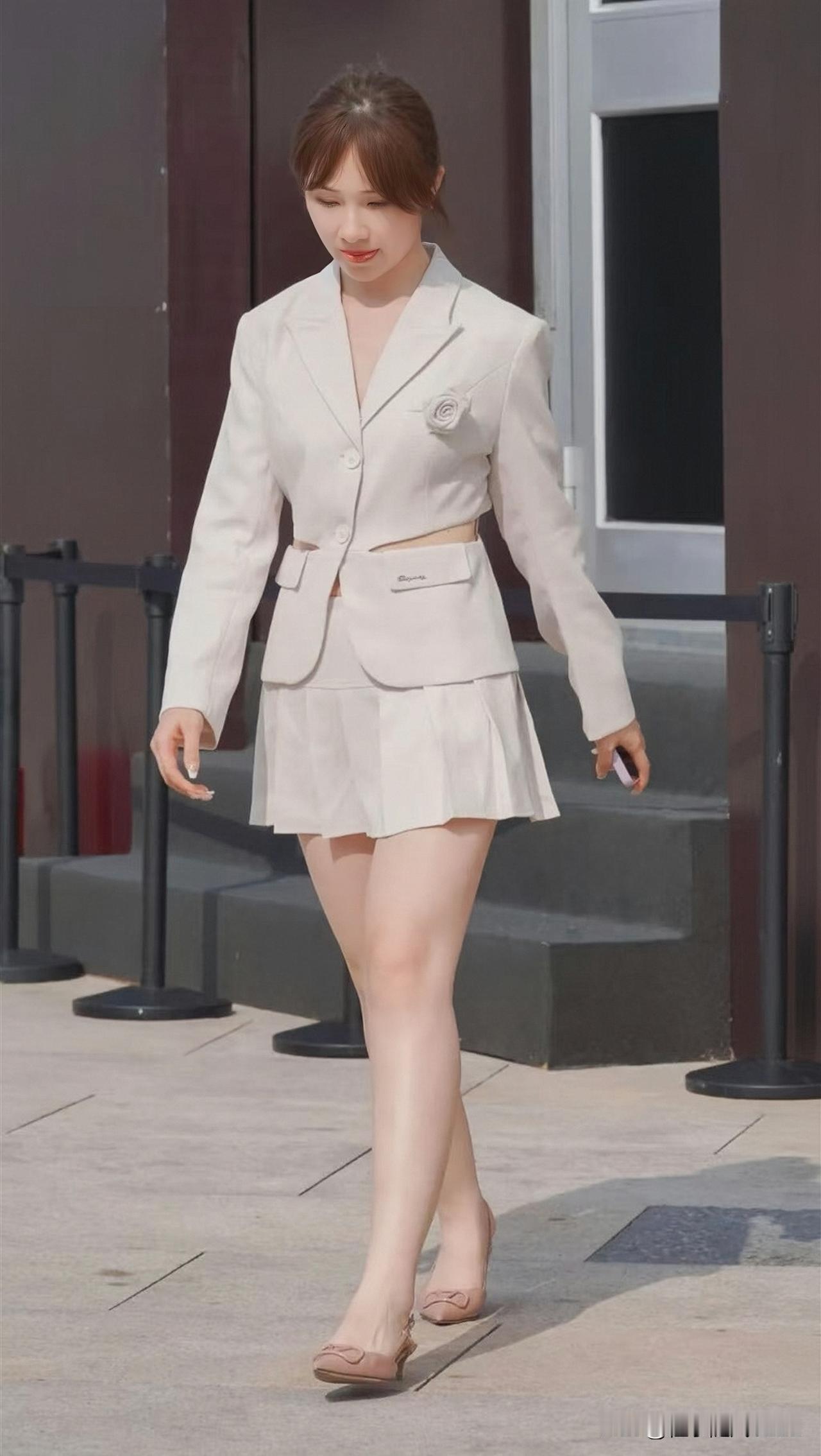 高铁上的“奶白松弛甜妹”,白色短袖+灰裙+白丝+白鞋,把元气和舒服焊在身上。穿搭