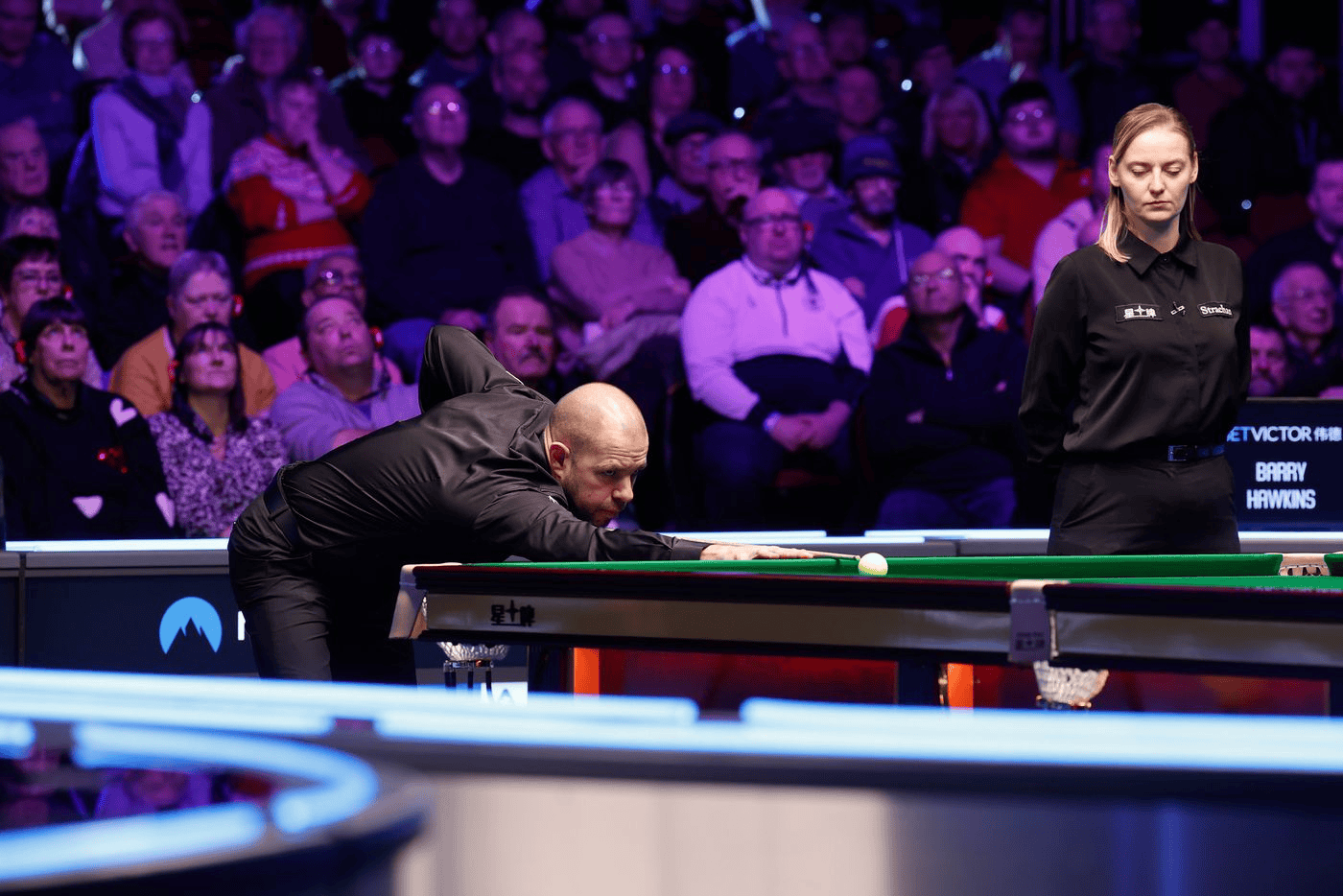 虎扑02月27日讯据WST官方消息,巴里-霍金斯在周一首轮开赛前一度因背痛濒临退赛,但他最终以4-2击败本土夺冠热门马克-威廉姆斯,跻身斯诺克威尔士公开赛八强。