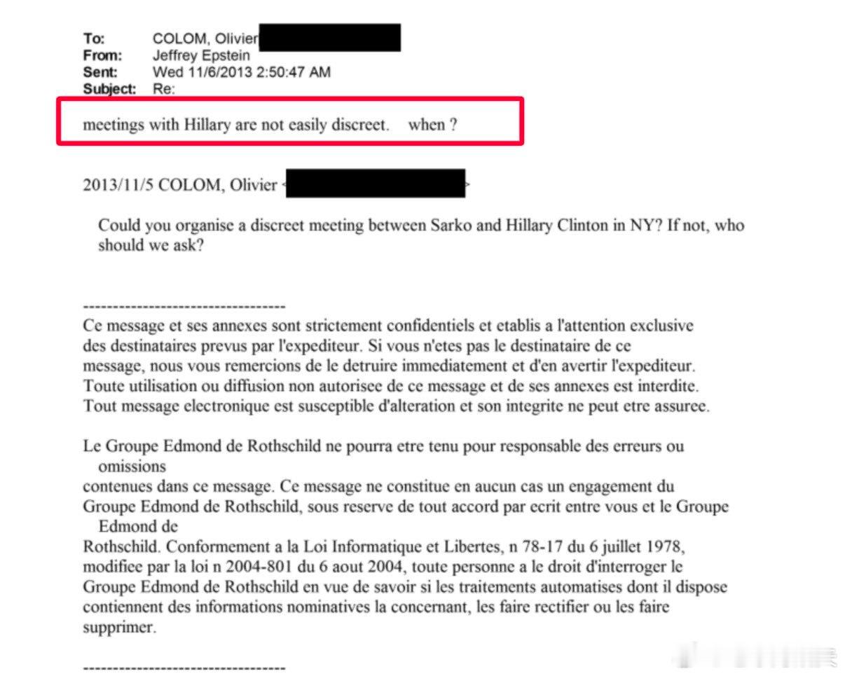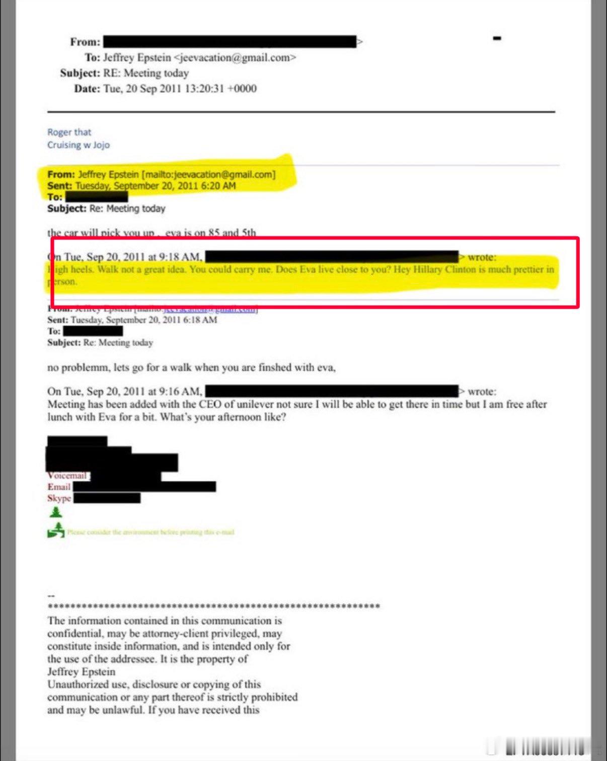 ‼️希拉里说她从未见过杰弗里·爱泼斯坦。但与杰弗里·爱泼斯坦的电子邮件显示,事实并非如此: