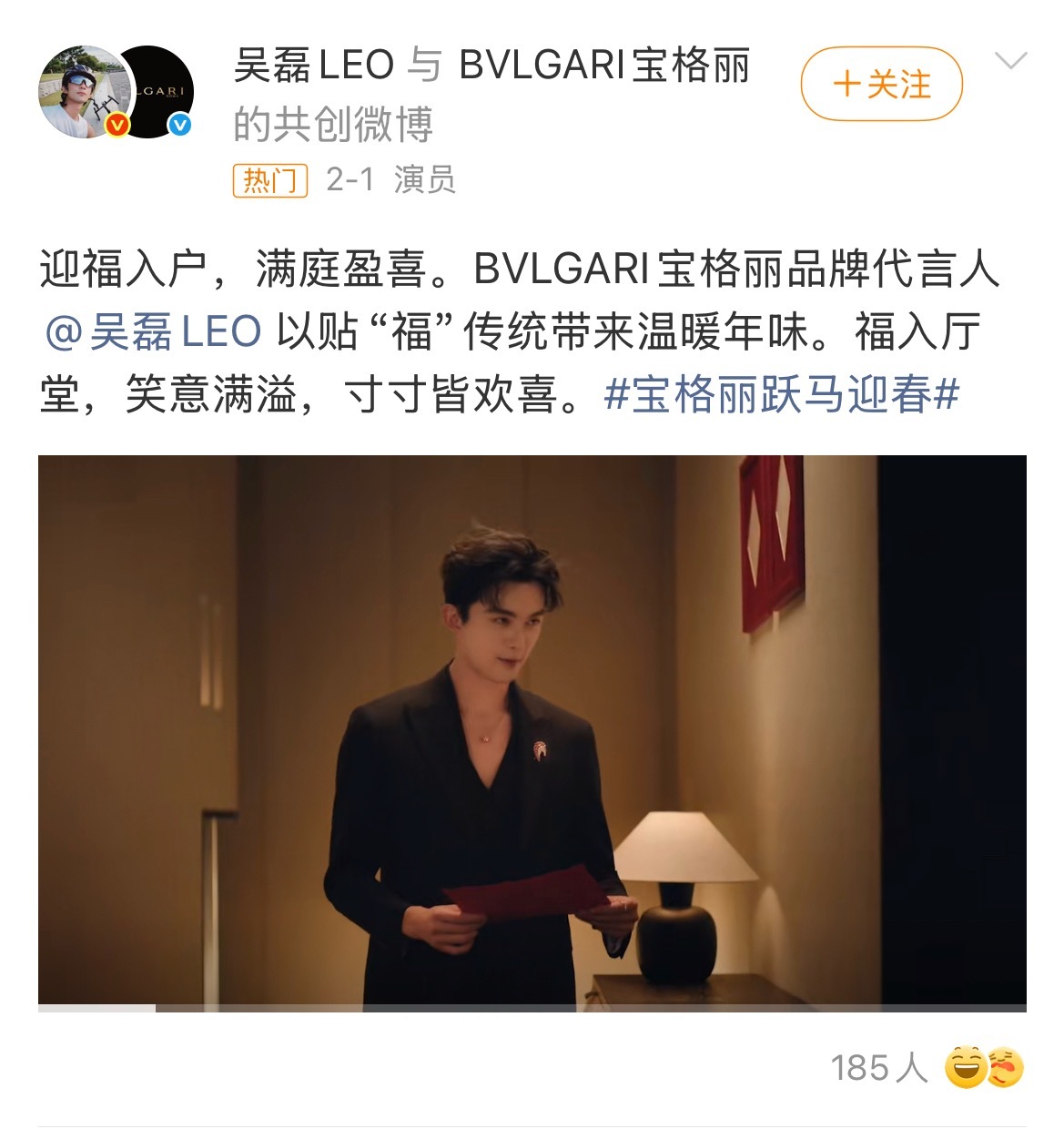 宝格丽总裁更新代言人名单没有吴磊了,但是吴磊不是这个月刚拍了新春广告?