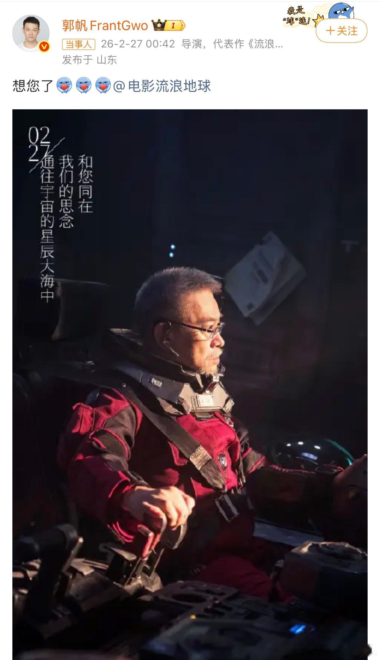 郭帆深夜怀念吴孟达郭帆悼念吴孟达去世五周年27日凌晨,郭帆深夜发文怀念吴孟达:“想您了”。晒出的海报中也写着:“通往宇宙的星辰大海中,我们的思念和您同在。”