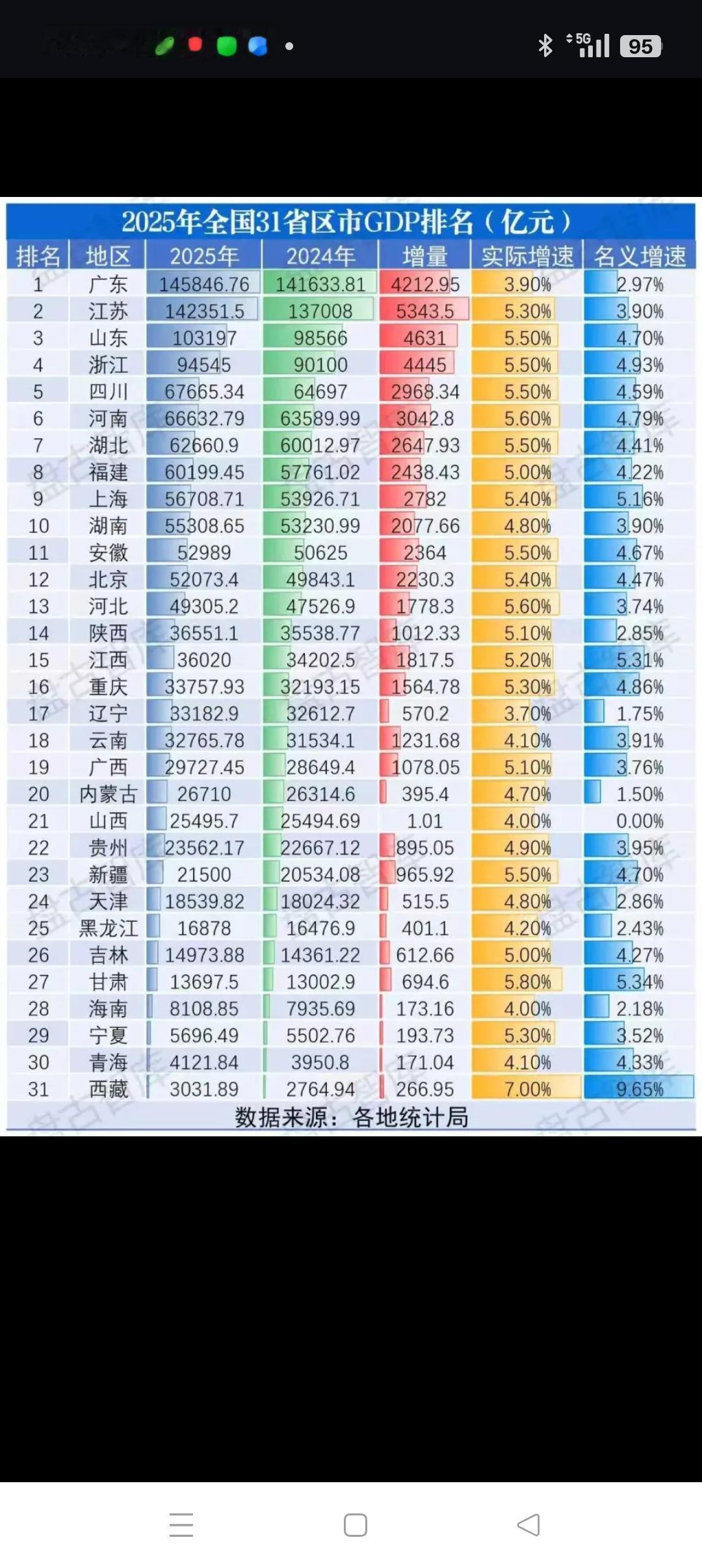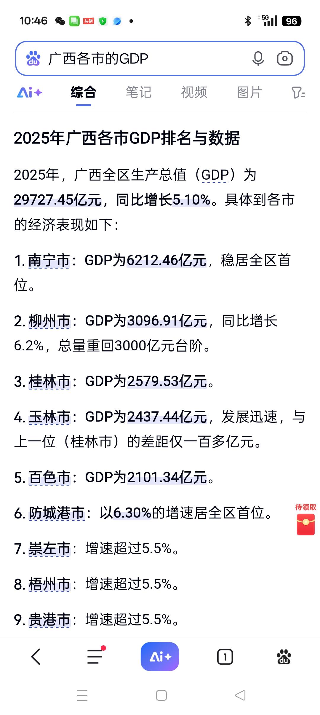 中国沿海经济带的缺憾 打开中国沿海省份地图,对照2025年各省GDP万亿城市数量一览,可以看出,从辽宁向南一直到广东,沿海省份GDP万亿城市数量共计19个,占比达到达65.5%,且已连成带。唯独到了沿海经济带(不含海南和台湾两个岛屿型的省份)最南端的广西,到目前为止,还没有一个城市GDP达万亿,且整体经济发展也相对落后,全区2025年GDP总量还不足3万亿,还不到湖北、四川、河南等内地省份的一半。 广西的发展相对落后,是历史、地理、经济结构和战略选择等多重因素长期交织作用的结果,并非单一原因所致。 一是地理条件的天然制约 地形破碎,交通成本高:广西以山地、丘陵为主,素有“八山一水一分田”之称。这种复杂的地形极大地增加了铁路、公路等基础设施的建设难度和成本,阻碍了区内城市间的高效联通,也限制了工业的集中布局和规模效应的形成。 港口条件受限:虽然拥有漫长的海岸线,但北部湾沿岸多为浅水港,缺乏天然的深水良港,难以承接大型远洋船舶,削弱了其作为西南出海通道的竞争力。相比之下,珠江水系的便利性使得西南地区的货物更倾向于经广东出海。 二是 历史机遇的错失 改革开放初期的迷茫:在80年代,广西未能像广东那样抓住机遇,明确以融入珠三角为核心的发展战略。反而将发展重心放在了北海市,希望通过“北海模式”带动全区,但因缺乏产业基础,导致了90年代初的房地产泡沫破裂,错失了关键的十年。 “大西南通道”战略的局限:90年代,广西又将希望寄托于建设防城港,打造辐射大西南的“出海大通道”。然而,由于缺乏强大的内陆经济腹地支撑,且交通干线(如高速公路)建设滞后,这一战略未能有效吸引大量产业转移,广西更多时候只是成为了物流的“过道”而非“目的地”。 三是 经济结构转型缓慢 工业基础薄弱,新动能不足:广西的工业长期依赖传统资源型和重化工产业(如柳州的汽车、冶金)。近年来,这些传统产业面临转型压力,而新能源汽车、光伏等新兴产业虽增速亮眼,但整体体量尚小,尚未能完全挑起大梁,形成新的增长极。 “龙头”城市带动乏力:广西缺乏一个具有强大辐射力的经济龙头。首府南宁的经济总量和产业实力相对不足,难以有效带动全区;而传统的工业重镇柳州,近年来也面临增长放缓的困境,导致全区缺乏稳定的增长引擎。 产业结构偏传统:第一产业(农业)占比较高,远高于全国平均水平,而第二产业(工业)占比偏低,服务业虽占比高,但高附加值的现代服务业发展不足。 四是人才与资本短板 高素质人才匮乏:广西的高等教育人口占比和人才储备与发达地区差距明显。本地培养的高素质人才外流至广东等发达地区,而外部人才又因产业基础、收入水平等因素难以吸引,形成了“人才洼地”。 投资与资本积累不足:长期以来,广西在基础设施和产业投资上的累计投入相对不足,影响了工业化进程和资本积累,导致经济起点较低。 五是区位优势未能有效转化 “近水楼台”未得月:广西与经济发达的珠三角仅一衣带水,本应是承接产业转移的首选地。但受制于交通、成本和政策等因素,广西未能有效融入珠三角的产业链,反而在一定程度上被其“虹吸”了劳动力和资源。 面向东盟的潜力待挖:广西作为中国-东盟合作的前沿,其区位优势在物流和边贸方面有所体现,但尚未能有效形成“通道+产业”的联动发展格局,将通道优势转化为强大的产业优势。 综上所述,广西的发展滞后是“先天不足”与“后天努力”中的曲折反复共同作用的结果。近年来,广西正通过“强首府”战略、平陆运河建设等举措寻求突破,但要实现跨越式发展,仍需在优化产业结构、吸引和留住人才、深度融入区域经济一体化等方面持续发力。