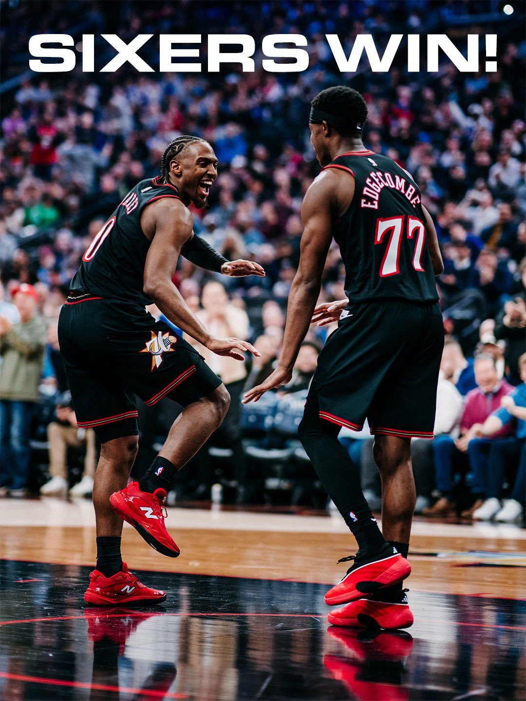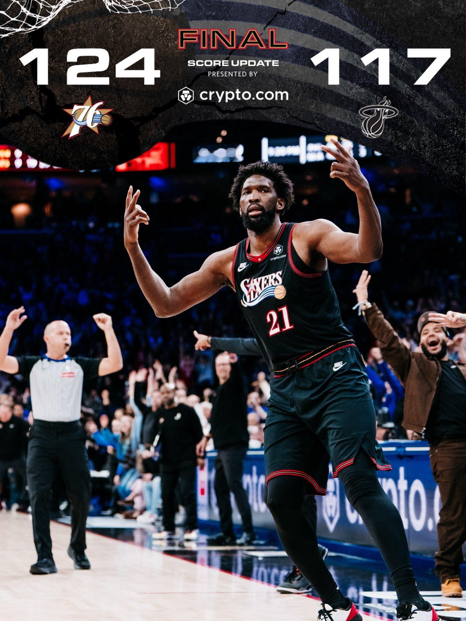 稳住第六!全场比赛结束:76人队主场124-117险胜热火队,球队取得三连胜!马克西28分4篮板11助攻5抢断,恩比德26分11篮板4助攻,埃奇库姆19分8篮板4助攻,乌布雷21分8篮板3助攻,格兰姆斯9分4篮板,巴洛9分!