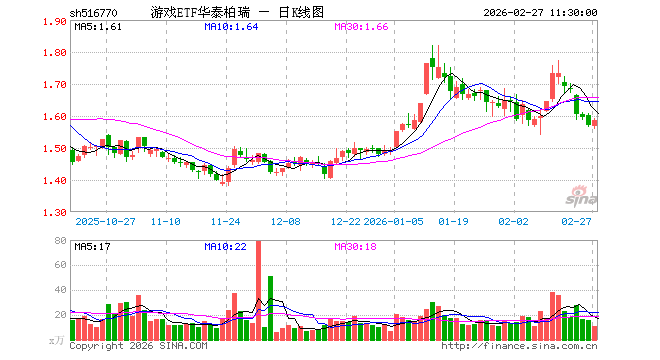 2月27日,截止午间收盘,游戏ETF华泰柏瑞(516770)涨0.89%,报1.585元,成交额1680.62万元。游戏ETF华泰柏瑞(516770)重仓股方面,巨人网络截止午盘跌0.53%,恺英网络涨1.51%,三七互娱涨0.58%,光线传媒跌0.76%,神州泰岳跌1.19%,完美世界涨3.66%,吉比特跌0.03%,掌趣科技涨0.35%,游族网络涨0.54%,浙数文化涨3.63%。